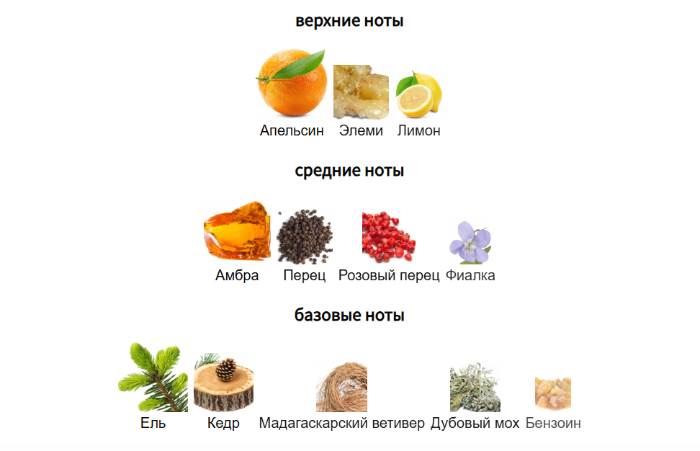Базовые ноты: ель, кедр, мадагаскарский ветивер, дубовый мох, бензоин.