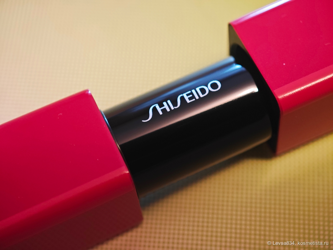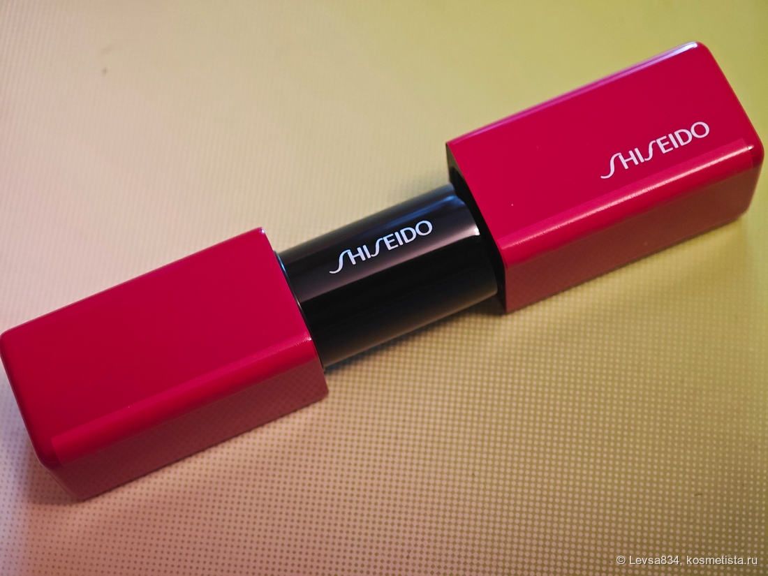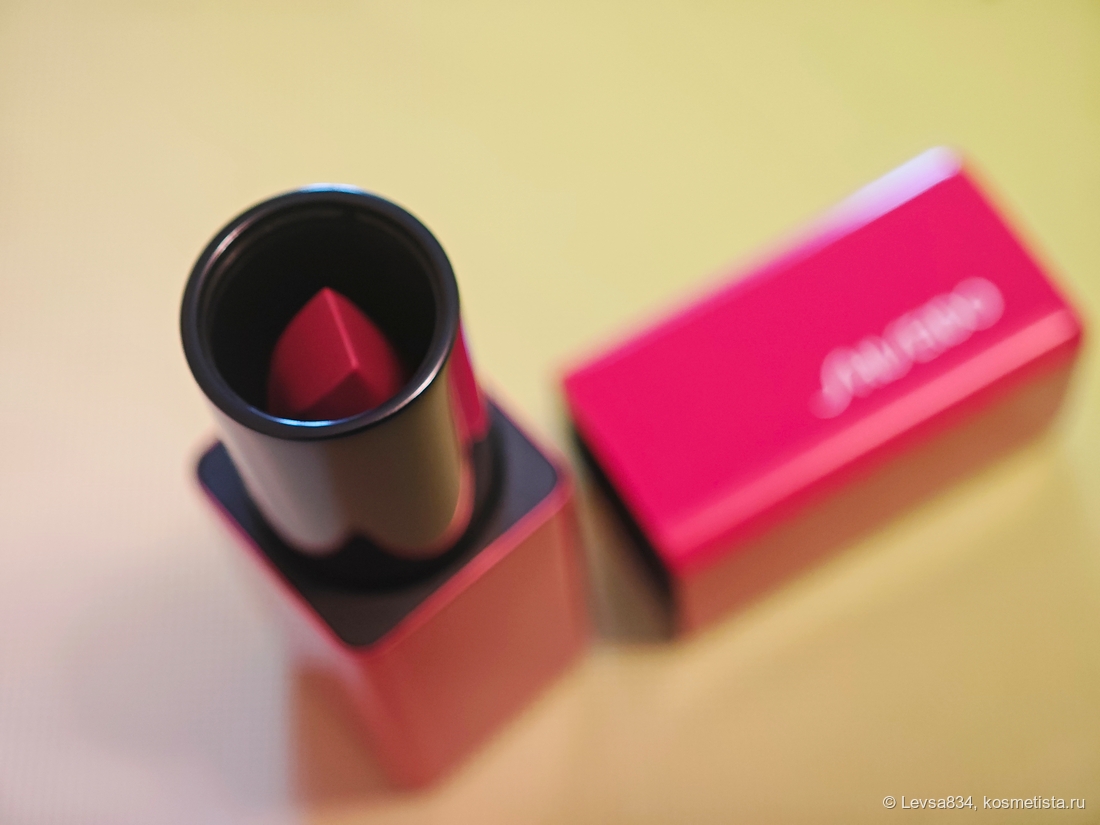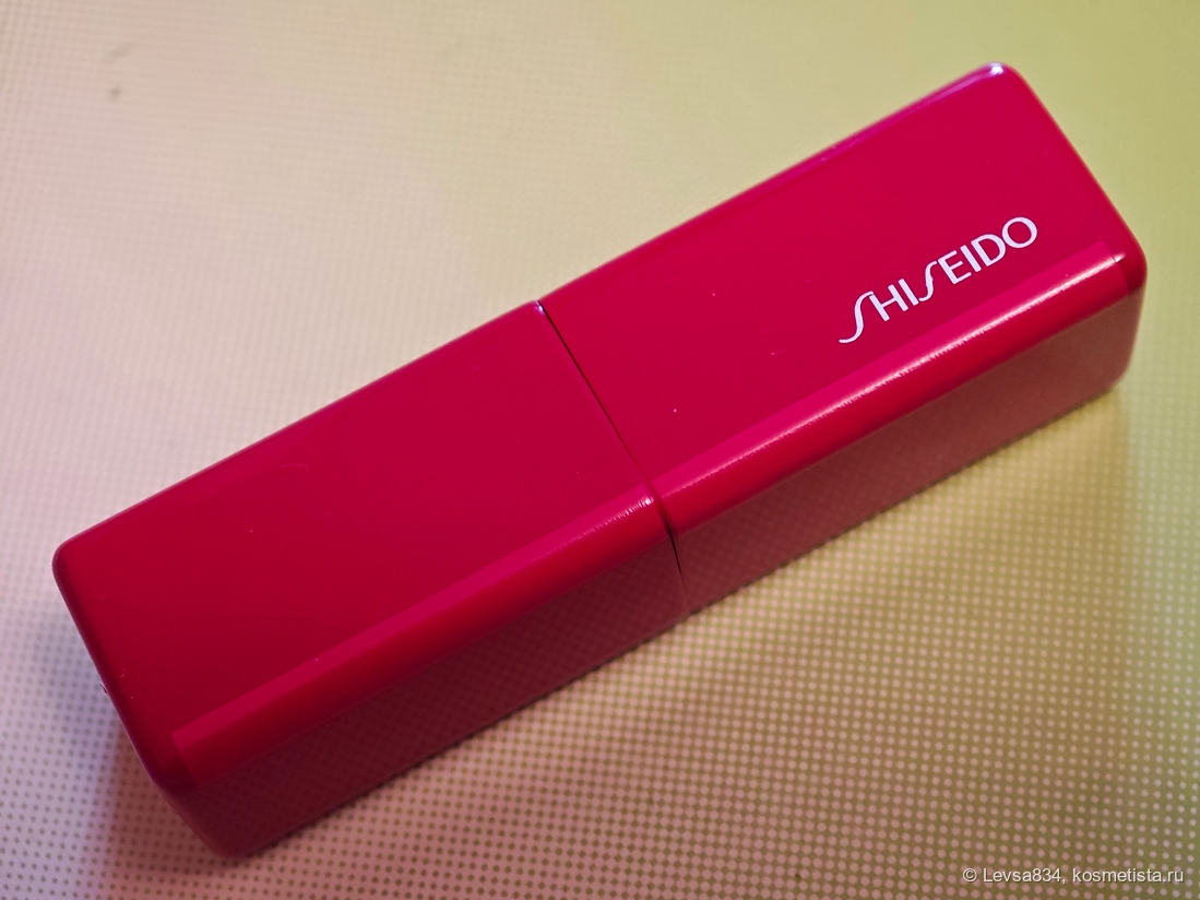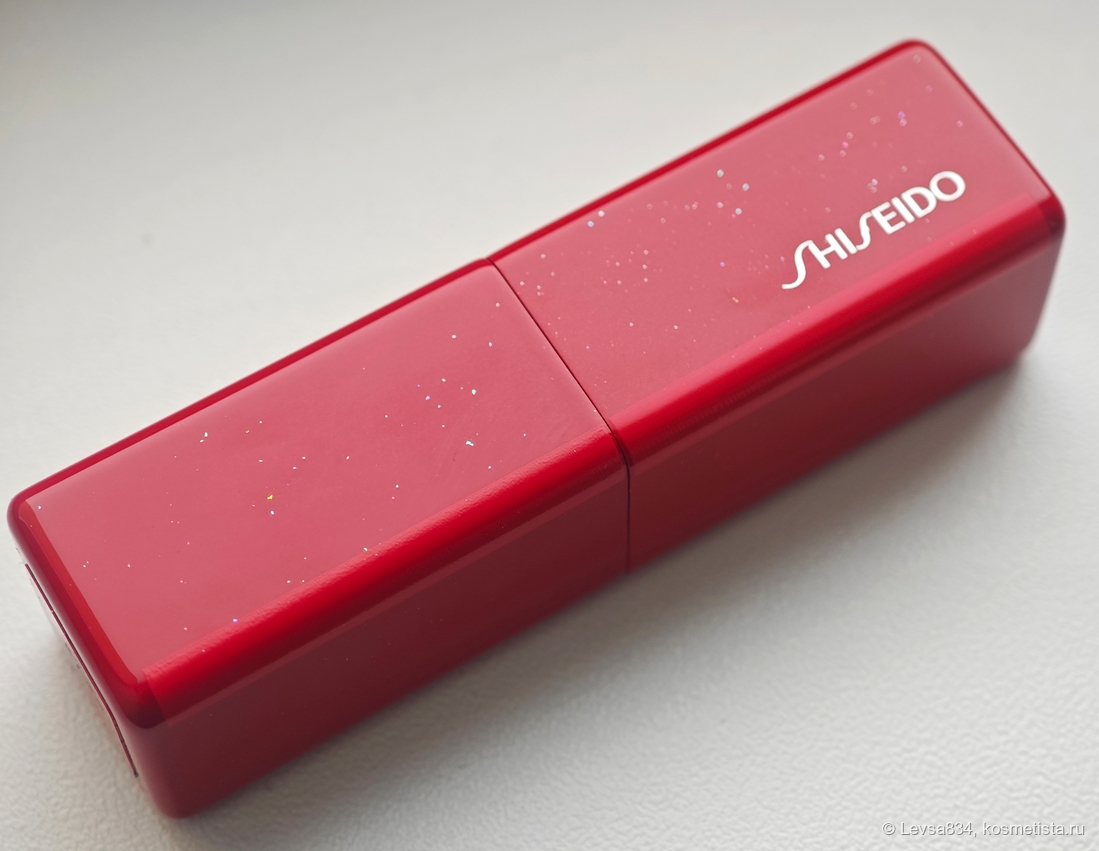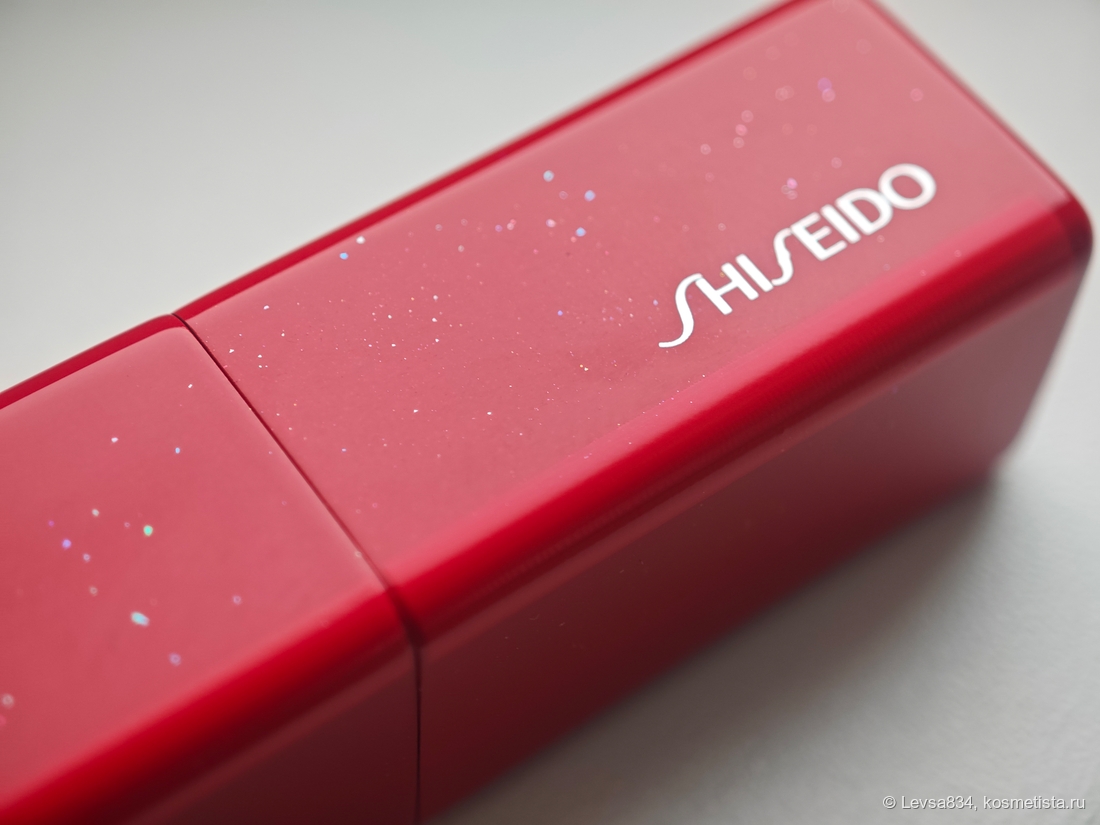 Да, футляр у помады в этой формуле интересный. Я не стесняюсь повторять, что квадрат (в срезе) с закруглёнными углами это одна из любимейших моих форм упаковки. А красный — один из любимых цветов. А блестящее для меня это наисильнейший триггер. Сложите всё вместе, и — оп! — я в ловушке. То ли Shiseido нарочно придумали этот футляр для меня, то ли случайно совпало, да ещё и помаду в сатиновой формуле дали, которую я люблю больше всех остальных, не знаю. Но точно могу сказать — попали в яблочко.