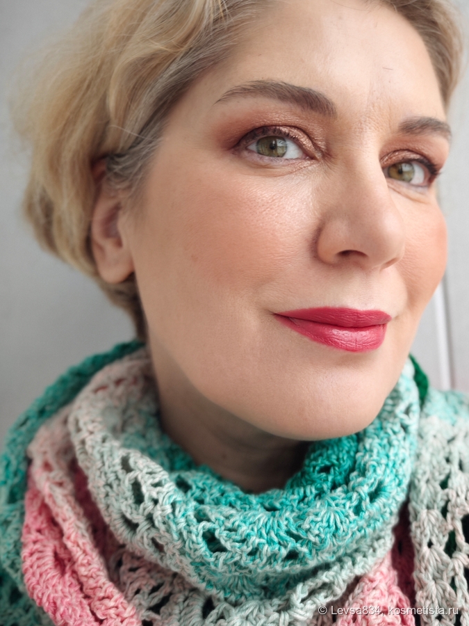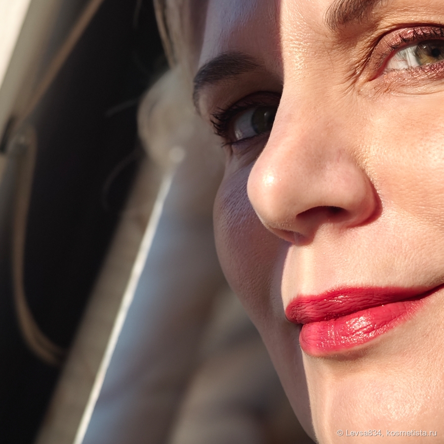 Это сдержанный красный, оттенок, идеальный для любого случая и любого макияжа. Он не слишком тёплый, я позволяю себе комбинировать его даже с прохладным макияжем глаз, и это делает его универсальным вдвойне.