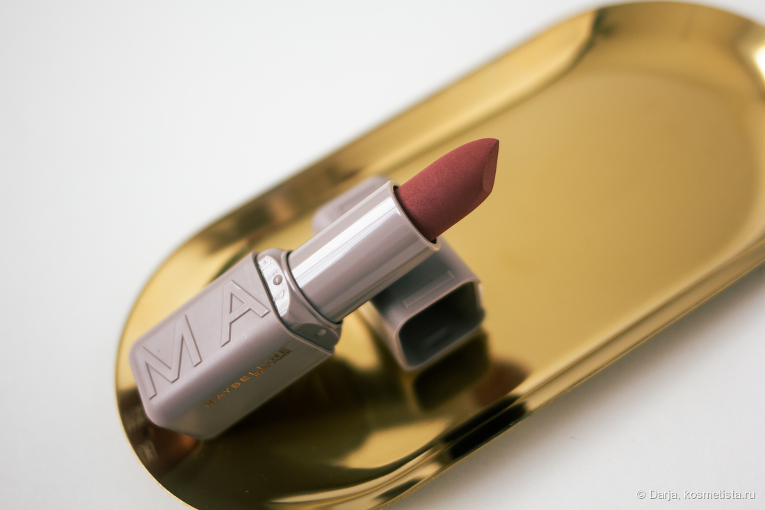 Стик очень мягкий, я успела слегка помять его уже во время съёмки фото для поста. У помады есть яркая сладко-ванильная отдушка. У меня давно не было помад Maybelline, но по воспоминаниям кажется, что отдушка схожа на другие помады бренда. Срок годности после вскрытия — 24 месяца.