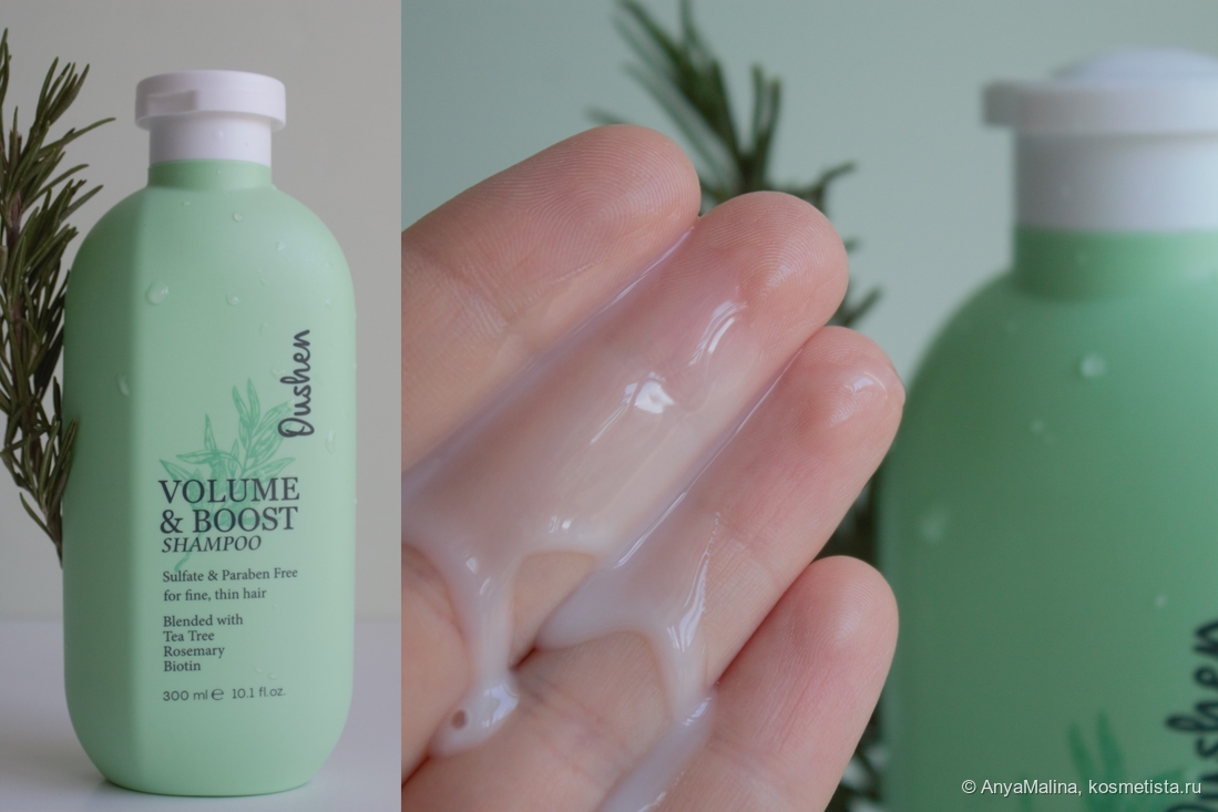 Не слишком густой по текстуре шампунь (несмотря на отсутствие сульфатов и парабенов в составе) неплохо пенится с первого раза, а при повтором нанесении, я всегда так делаю, пена взбивается у корней плотная и обильная, чего хватает промыть всю длину почти до талии без повторного добавления продукта. Смывается легко, но, в отличие от многих шампуней для объёма, не до скрипа. После мытья волосы остаются мягкими и прям нежными, даже до нанесения кондиционера. Аромат смывается водой почти полностью. За время использования реально каждый день мои волосы и кожа головы никак негативно на такое очищение не реагируют, ни зуда, ни перхоти, ни выпадения. Более того, есть ощущение, что из-за тщательного очищения прикорневой зоны не только чуть больше объёма, но и пушка стало как-то больше.