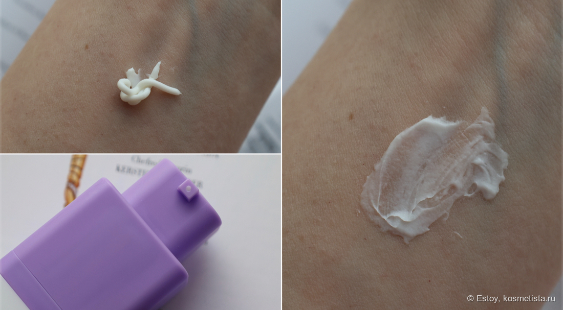 Текстура — невесомый гель-крем. Розовый оттенок придает витамина В12. Без спирта и отдушек.