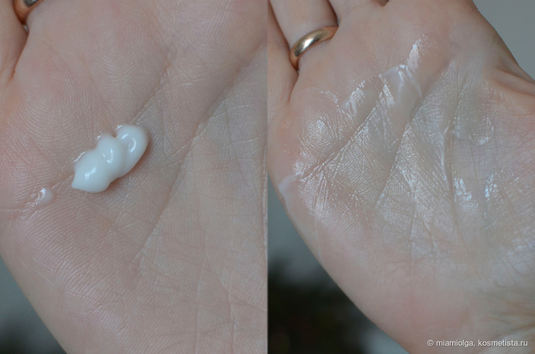 Текстура — такая, как надо. Не слишком лёгкая, но и не плотная, насыщенная. Наносится на лицо быстро, впитывается за несколько минут. Отдушка — яркая. Вообще я люблю отдушки в косметике, мне так приятнее ею пользоваться, но здесь даже мне кажется перебор. Для чувствительной кожи — осторожнее.