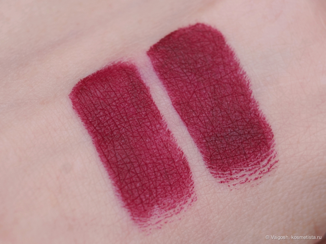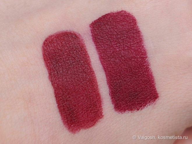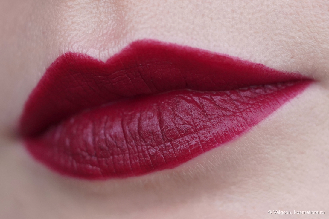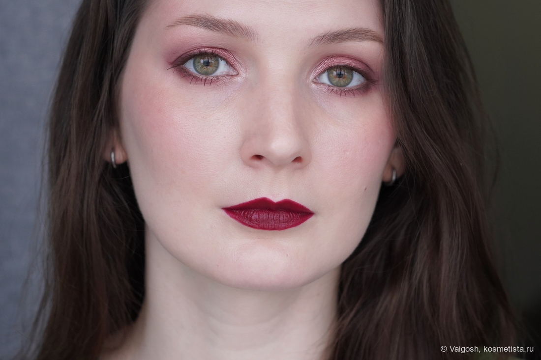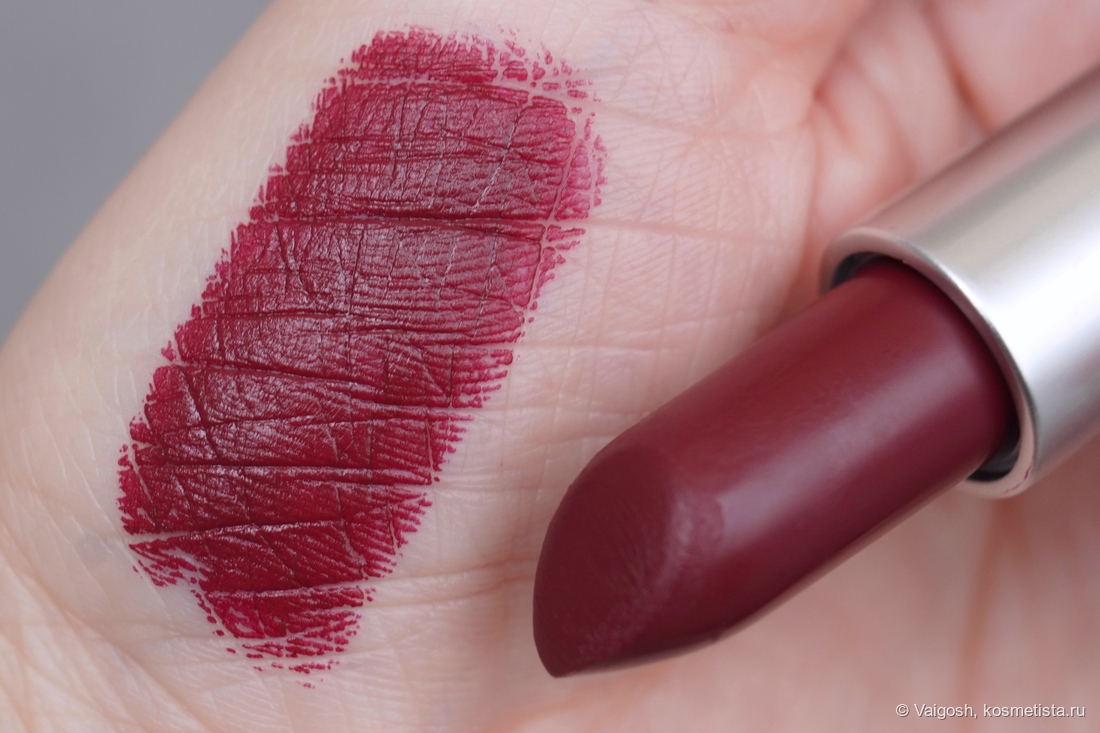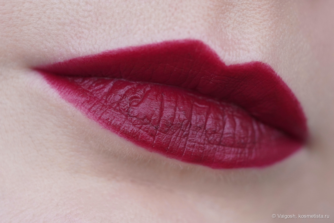 На сайте оттенок описан как насыщенный красновато-бордовый, и мне к сказанному добавить нечего — тут тот самый случай, когда «что вижу, то пою». К тому же, где я, а где маковские составители описаний, эти ребята меня одной левой за пояс заткнут.