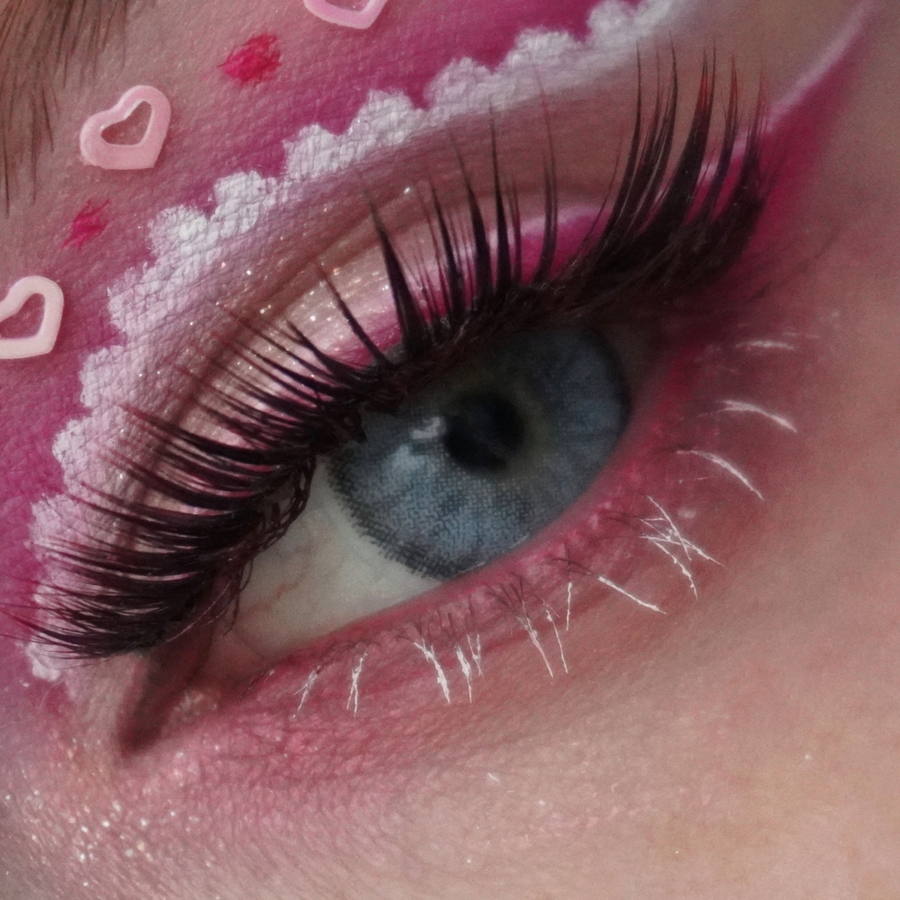 - Нижнее веко также оформляем розовым.