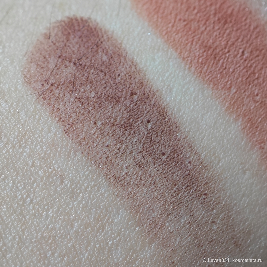 Светло-коричневый матовый, очень покладистый, но с одним условием: если наносить его на припудренную сухую кожу века, иначе залипнет пятнами. Не пылит.