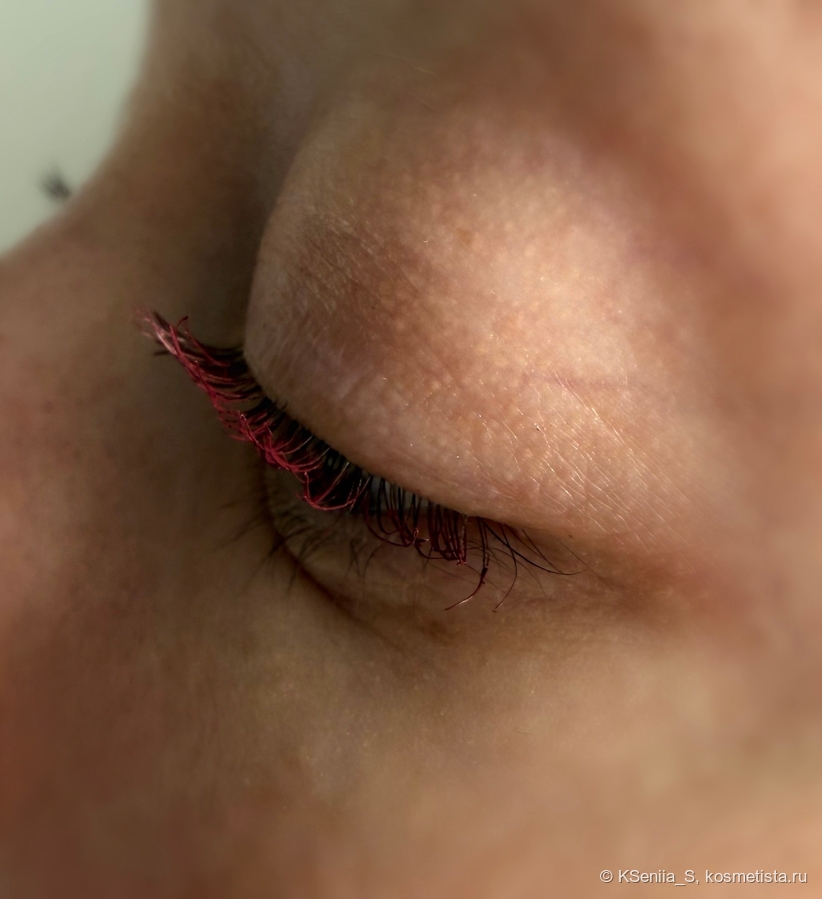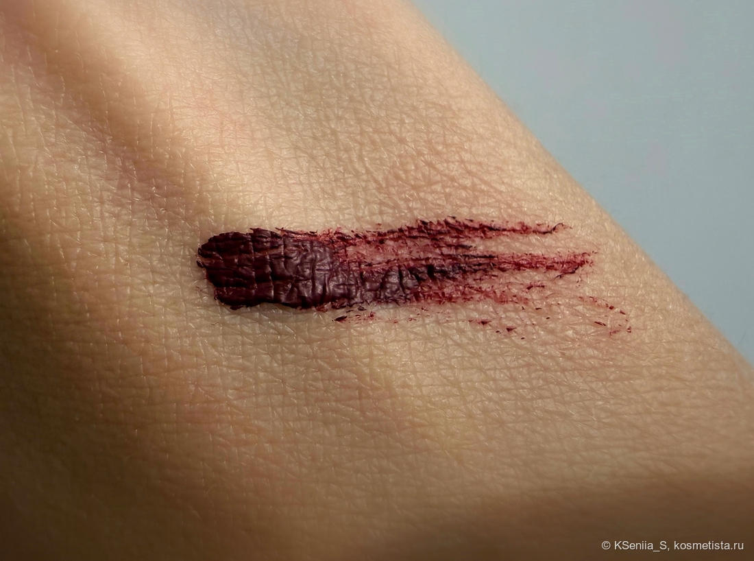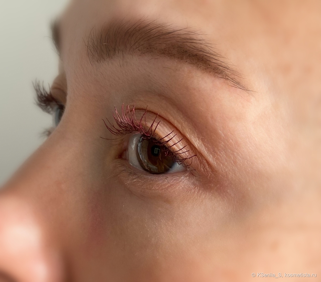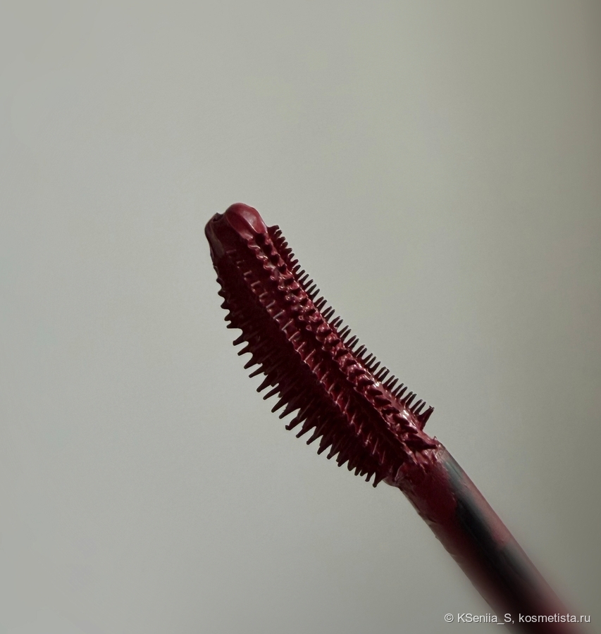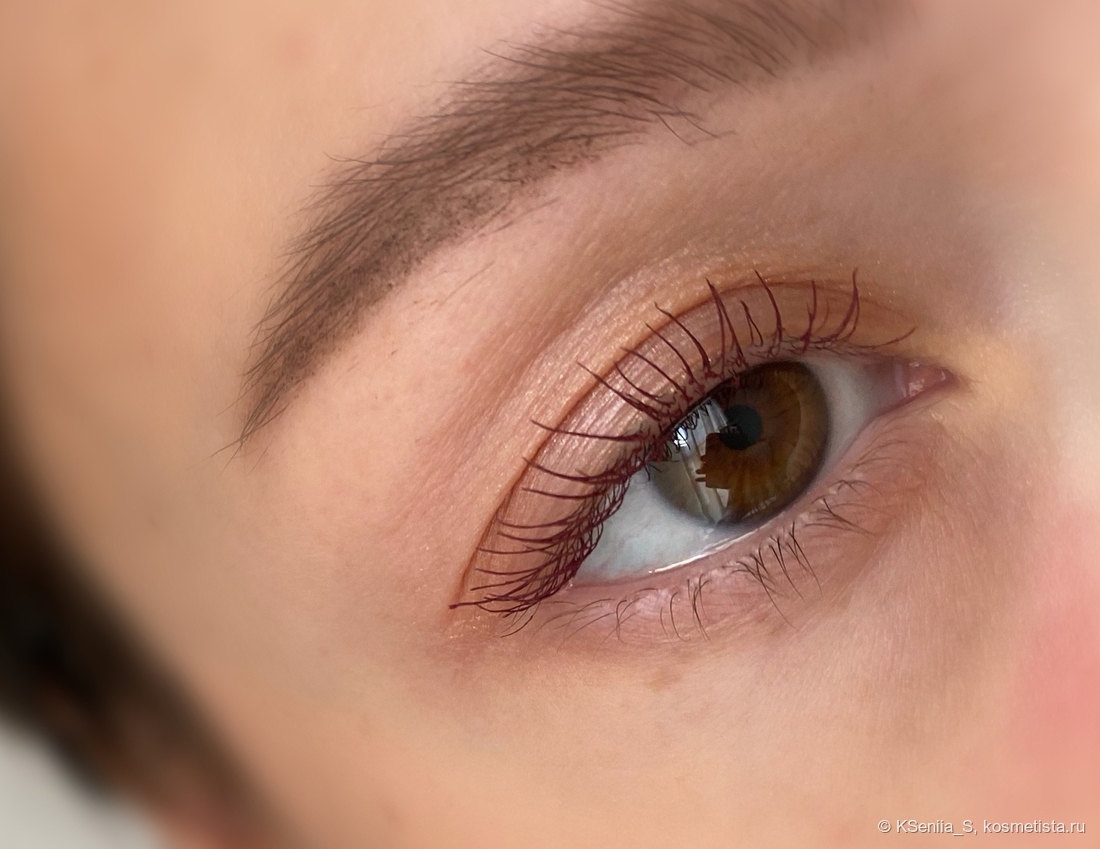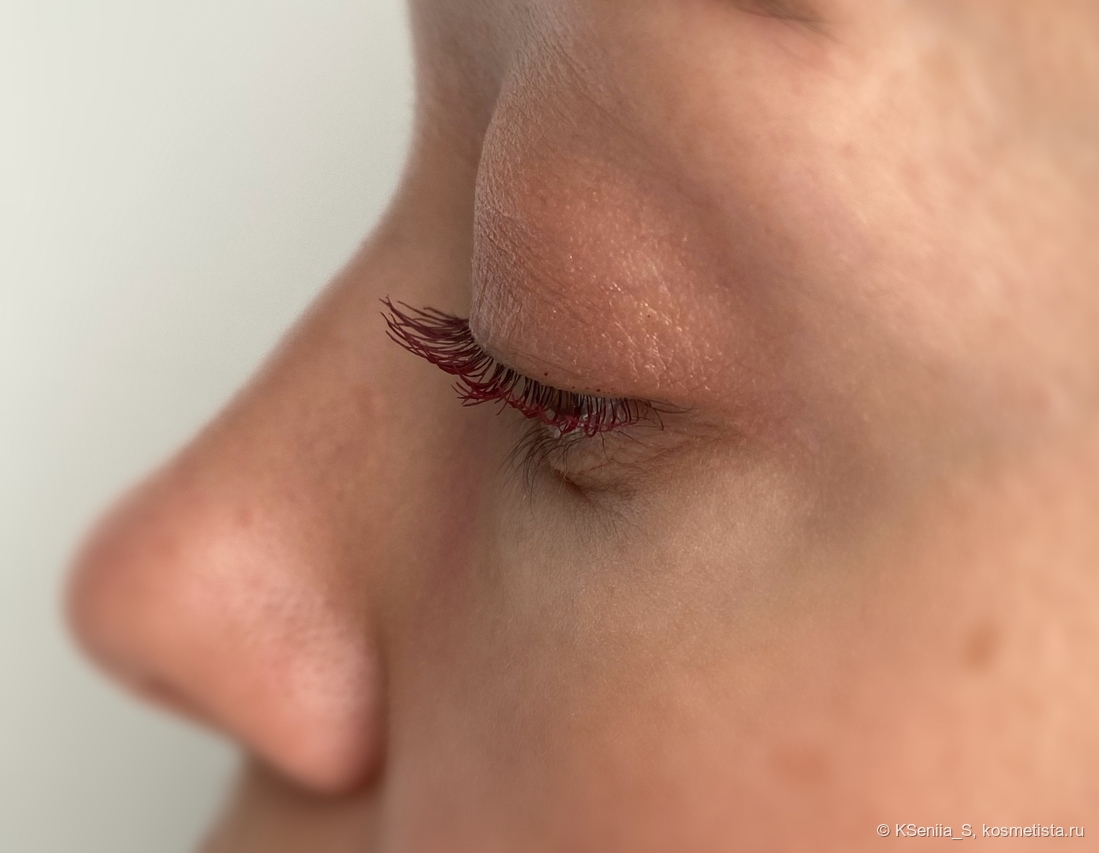 Для туши такого ценового сегмента она обладает отличными характеристиками: делает ресницы красивыми, объемными, длинными, с острыми кончиками, не осыпается, глаза не раздражает. Хотелось бы большей термостойкости, но здесь у меня только один лидер, который, увы, не купить, и в черном цвете. Попробуй найди бургунди, да еще и с термостойкостью! Китайцы — молодцы, быстро подхватили тренд на бордовые туши, еще и сделали термостойкими.