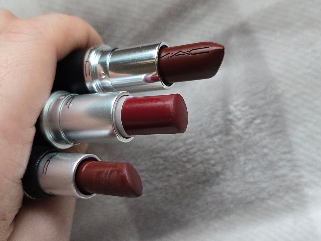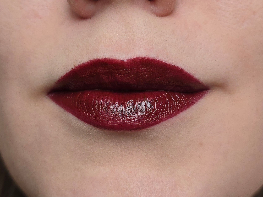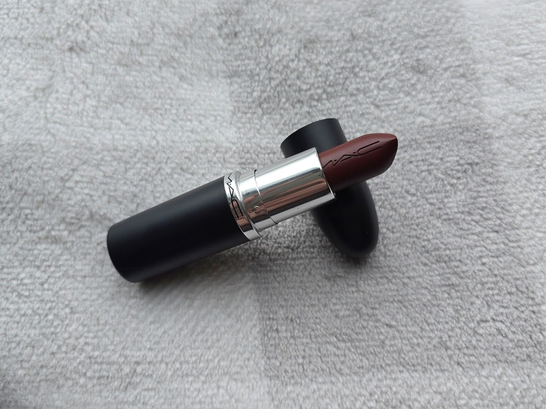 Цвет MAC описывают как blackened red, то есть исчерна-красный, ну не знаю, я не согласна, в подтоне есть и примесь коричневого, и малинового, и ещё черт его знает какого. В стике выглядит вообще коричневой.