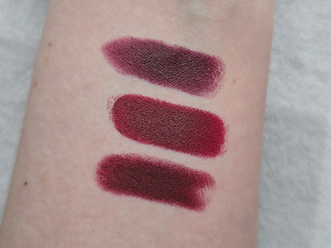 Решила добавить сравнение с двумя классическими «винными» помадами MAC, которые на самом-то деле к цвету вина отношение имеют лишь постольку поскольку, — Diva и Sin.