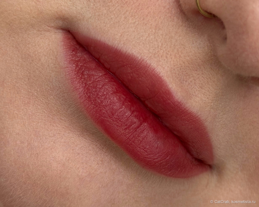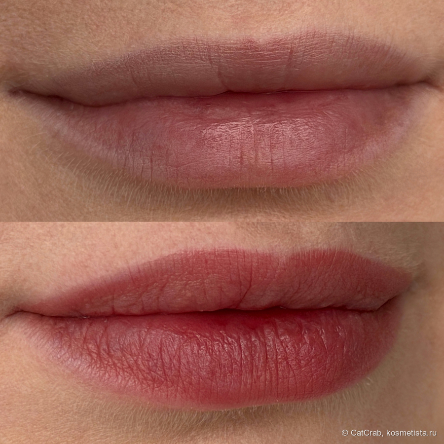 Тинт держится на губах хорошо, но не въедается в них железобетонно — кофе и легкие перкусы переживает без потерь, но от более серьёзных приёмов пищи остаётся только на контуре. Без остатка убирается с губ и гидрофильным маслом, и мицеллярной водой.