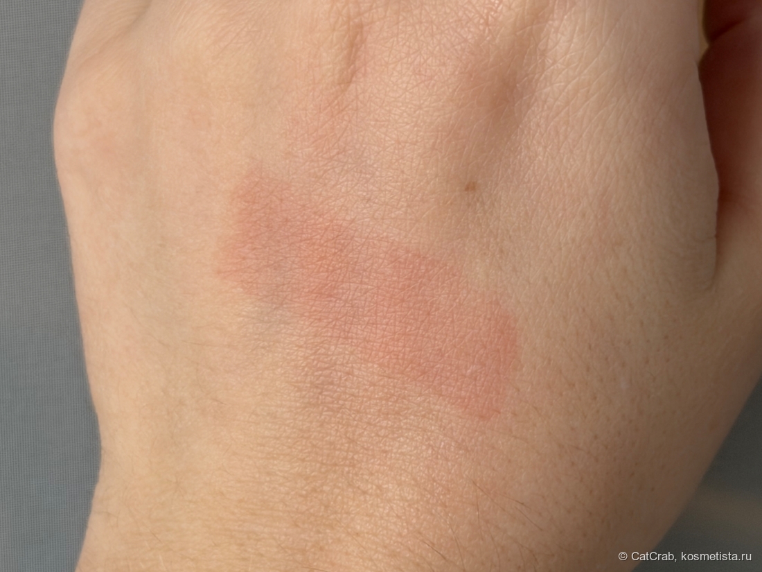 Тинт после средства остаётся красивый. Вот здесь я походила минут пять, а потом сняла глянцевый слой с руки: