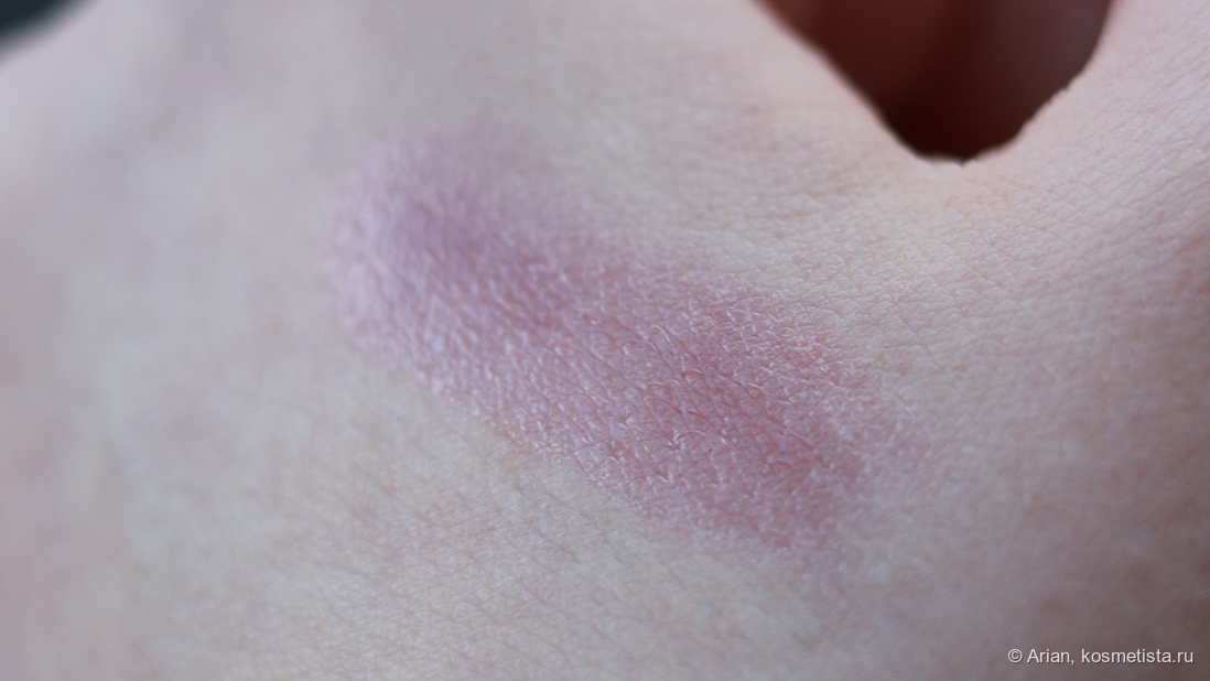 Оттенок Cassis, несмотря на название, мне больше напоминает винный. В стике, это, конечно, откровенный виноград, тёмно-бордовый, слегка коричневатый. Однако сам продукт не совсем такой. Из-за розовины чёрная смородина и фиолетовый подтон, ради которого я его, собственно, и брала, никак на мне не проявляются. Цвет выходит прохладный, но полупрозрачный и ближе к винному, если сильно наслоить. Если точнее, напоминает пятна от этого напитка на рубашке. Розовина, к слову, ещё и окрашивает внутреннюю упаковку.