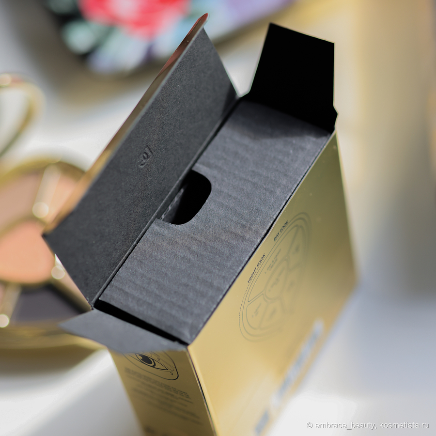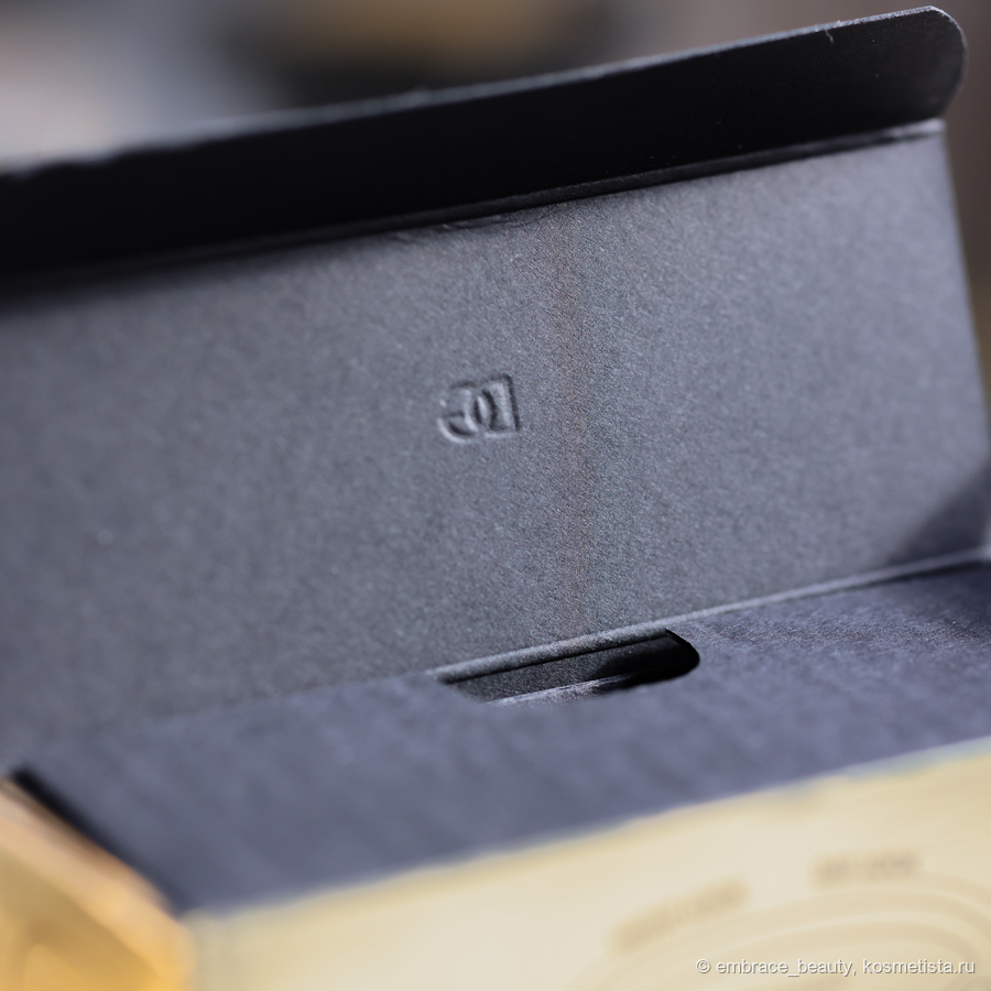 Не сказать, что я в восторге от оформления потому, что это классическая упаковочная история для люкса. Относительно гладкая, золотая упаковка с черными буквами.