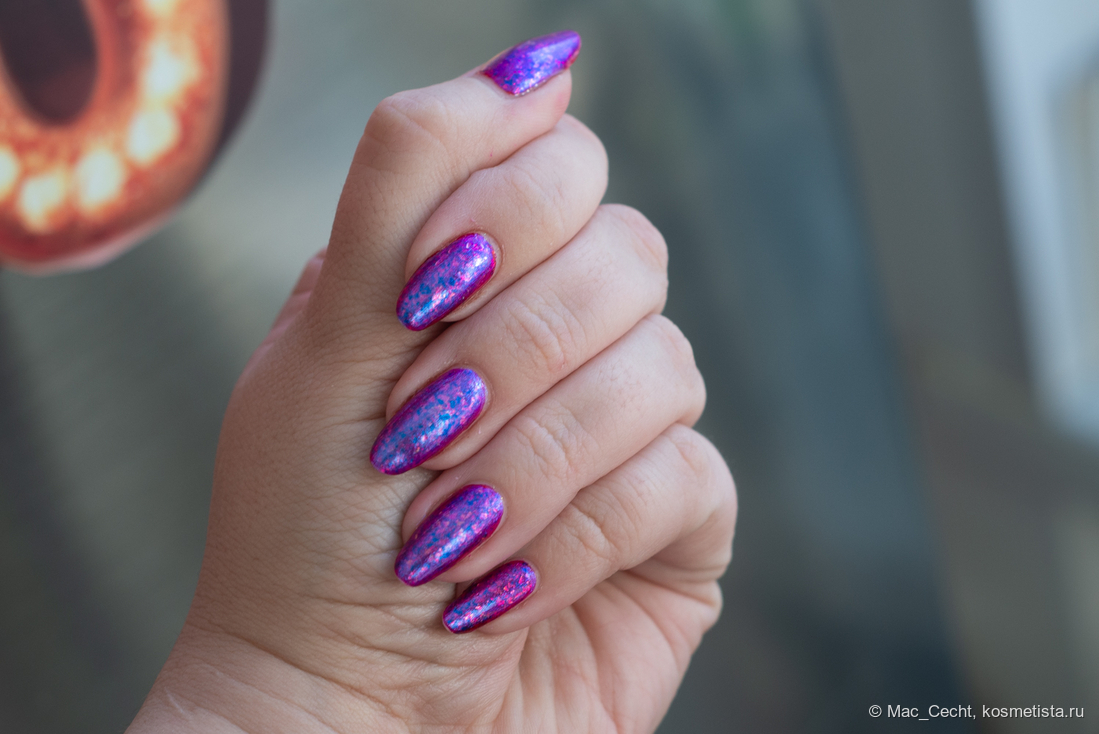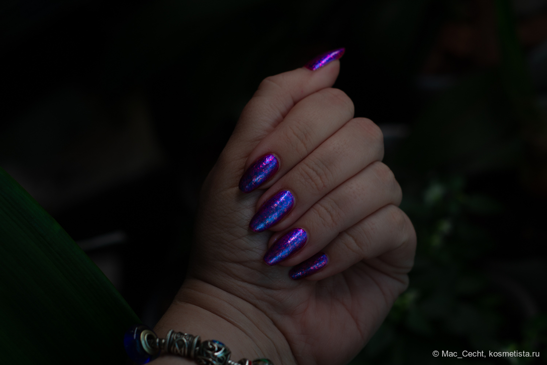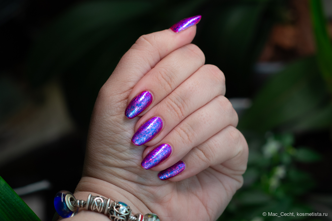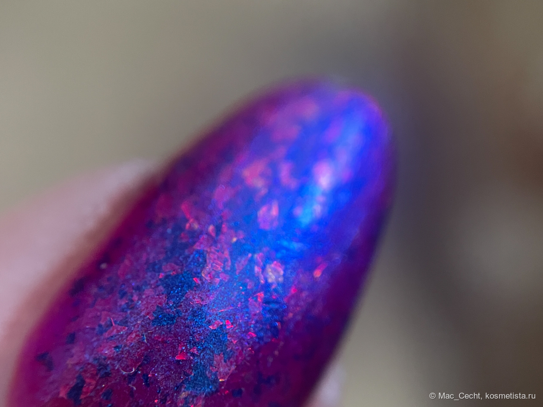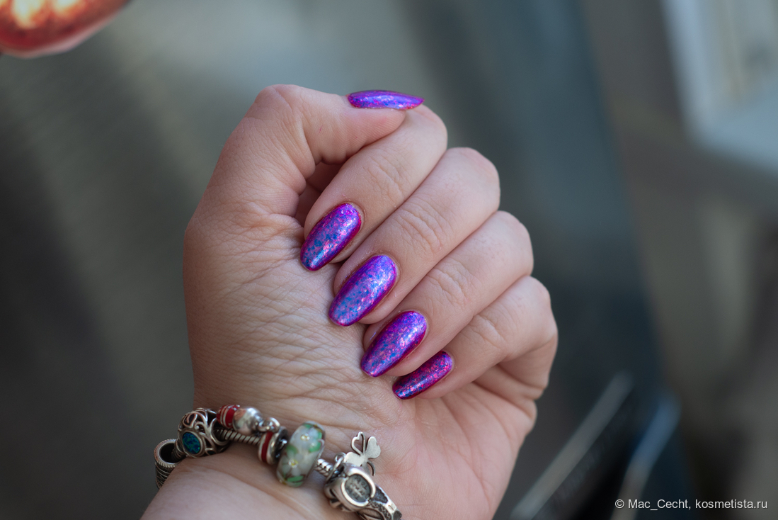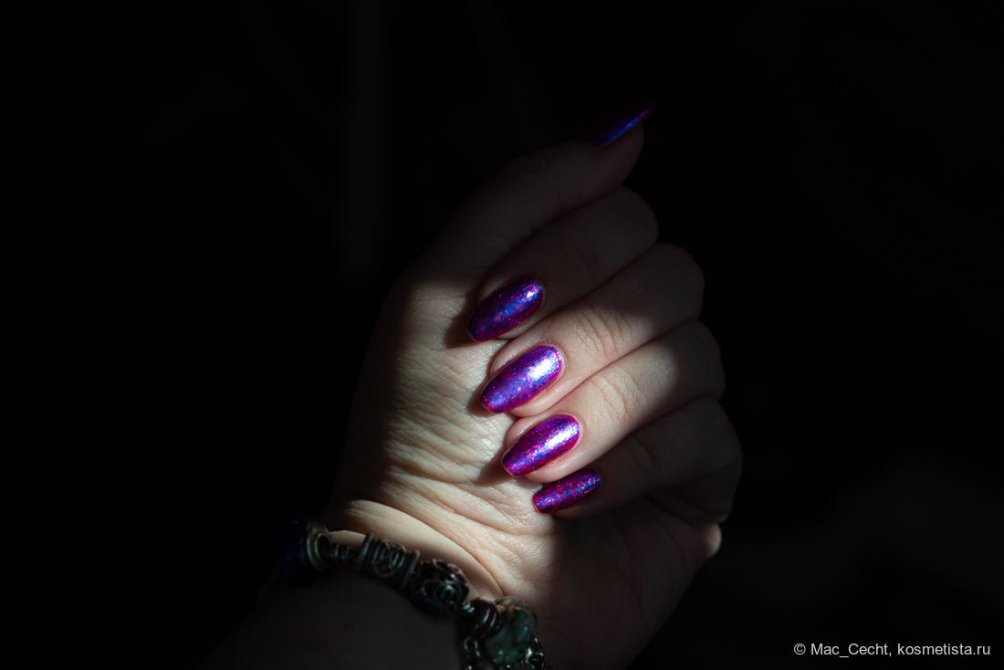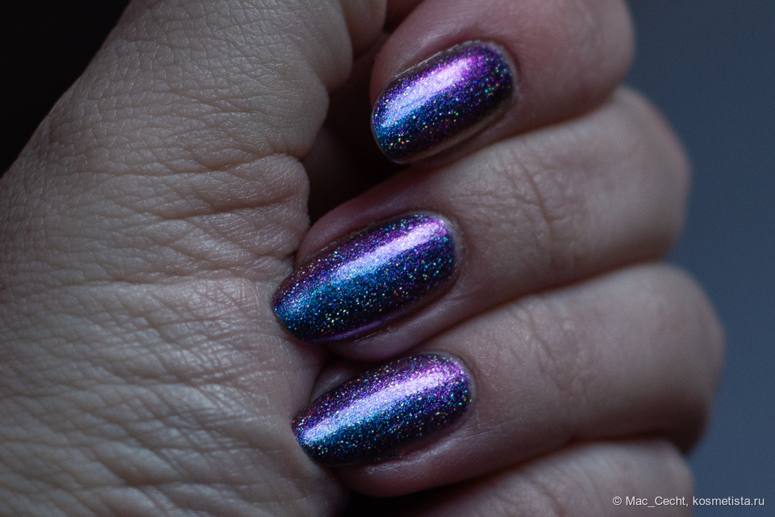 Сохнет быстро, сушек не требует, хотя под глянцевым топом, конечно, будет красив. Шиммер магически переливается на солнце и в искусственном свете.