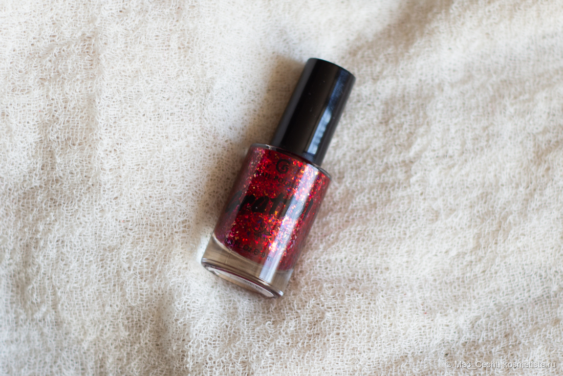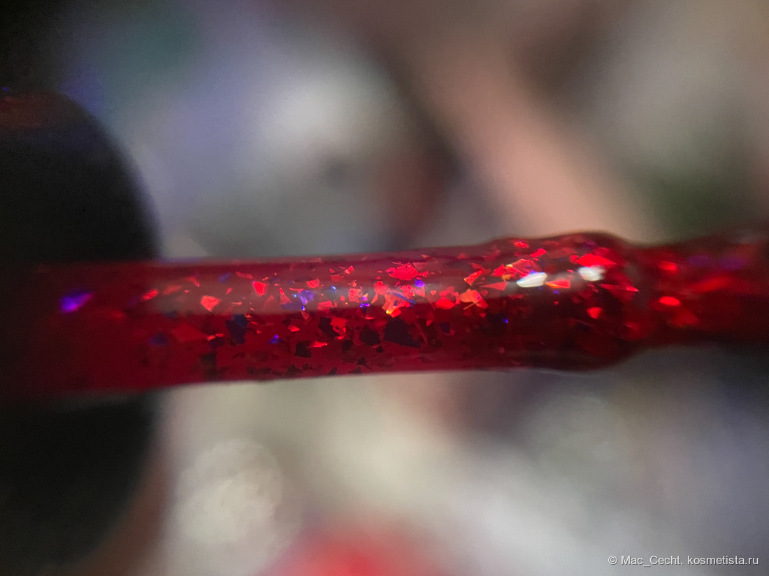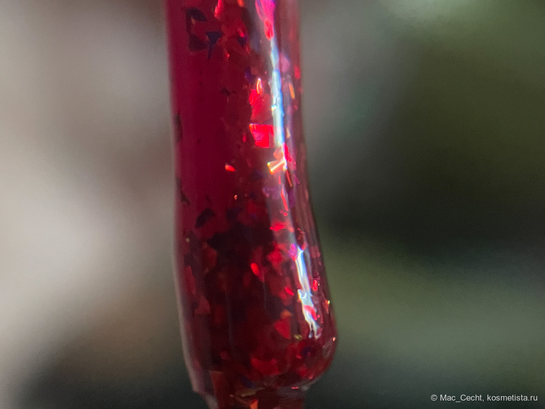 Слюда, говорят, золотая, но золото заметно, только если очень приглядеться, так, в основном, лак выглядит красным с красной слюдой. Плюс в нем есть редкие синие слюдинки.