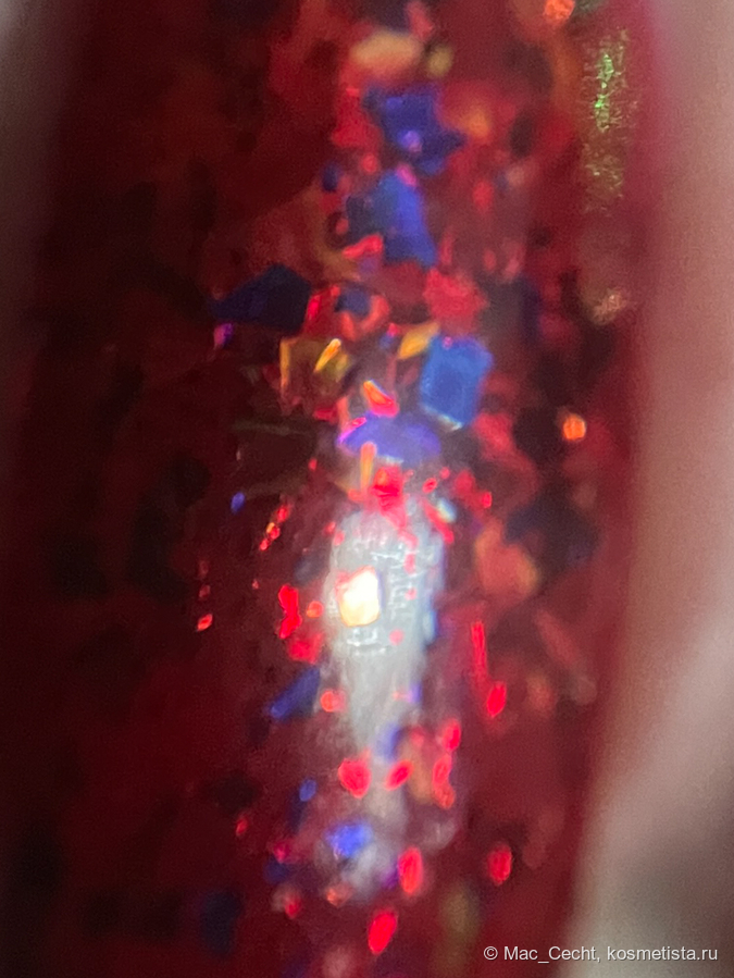X-mas Miracle — «прозрачный с большим количеством мультихромного бирюзово-розово-фиолетового шиммера и голографическими хлопьями».