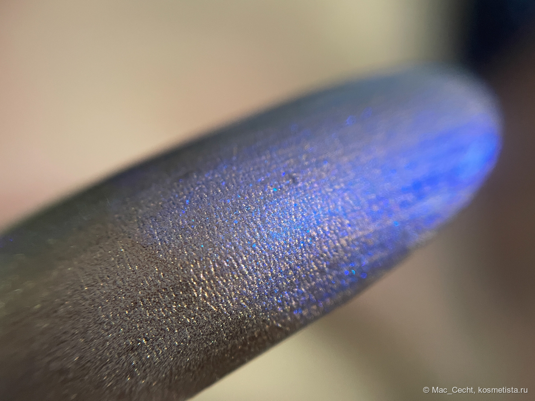 Лак-шиммер, хаметеонит из бирюзы в тил и фиолет, по касательной может мелькать теплый цвет типа желто-рыжего.