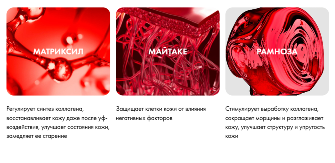 Кроме Co-Bonding технологии, направленной на усиленную выработку коллагена, в составе есть и другие активные компоненты с доказанной эффективностью: