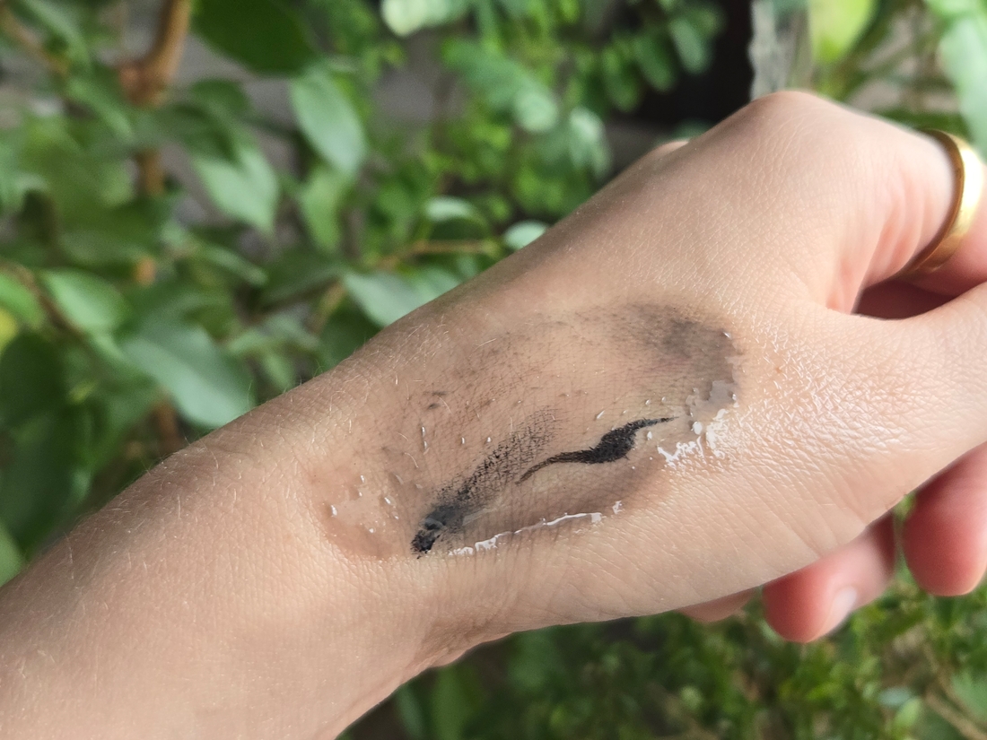 Дальше я удалила масло сухой салфеткой с руки. А лицо я просто умываю водой с гелем. Все продукты кроме одного очистились идеально.