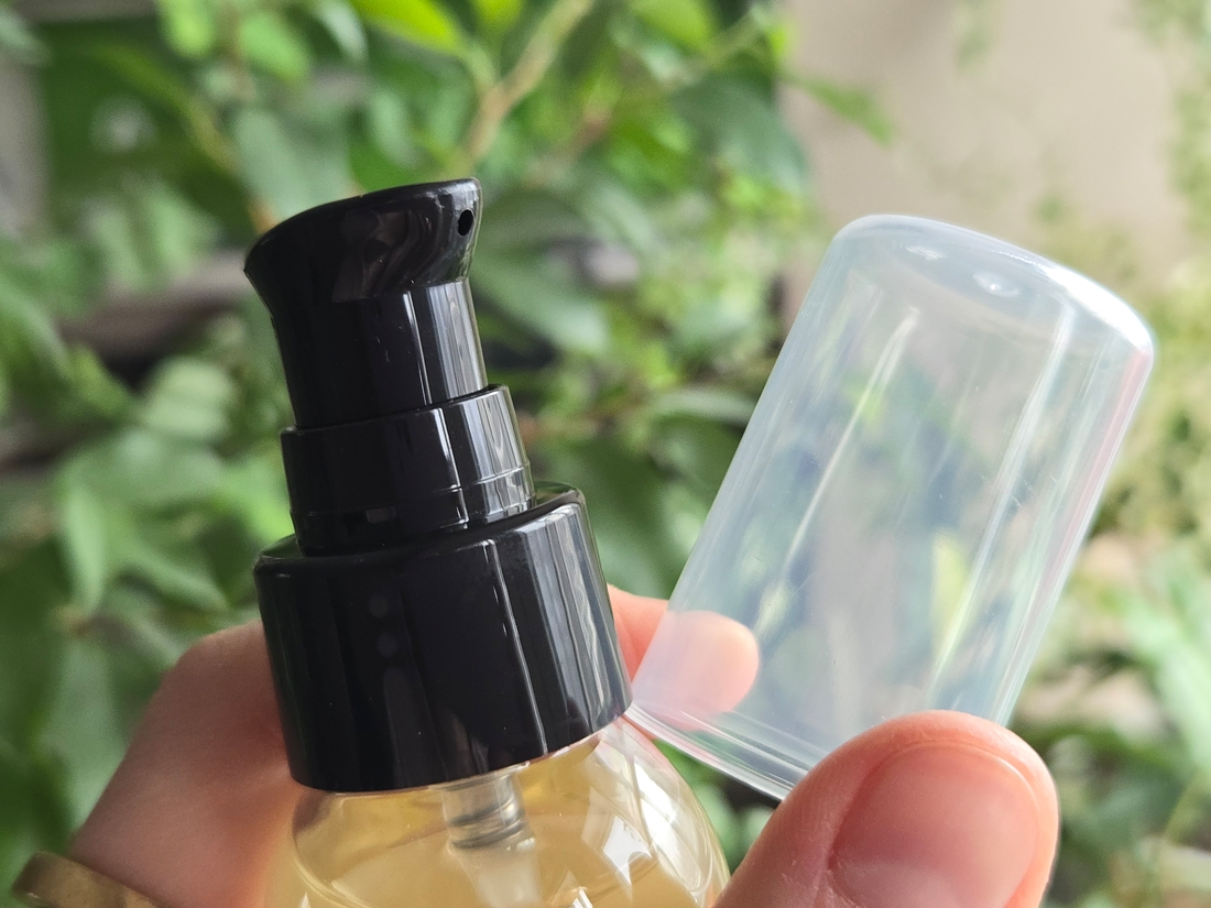 У флакона удобный дозатор, которым я наношу средство на ватный диск. Прозрачнаяя крышка плотно закрывает и не даёт ему вытечь.