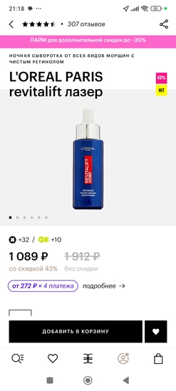 Сейчас у меня сыворотка с ретинолом 0,7 и крем с ретинолом, пока эффект не очень поняла.