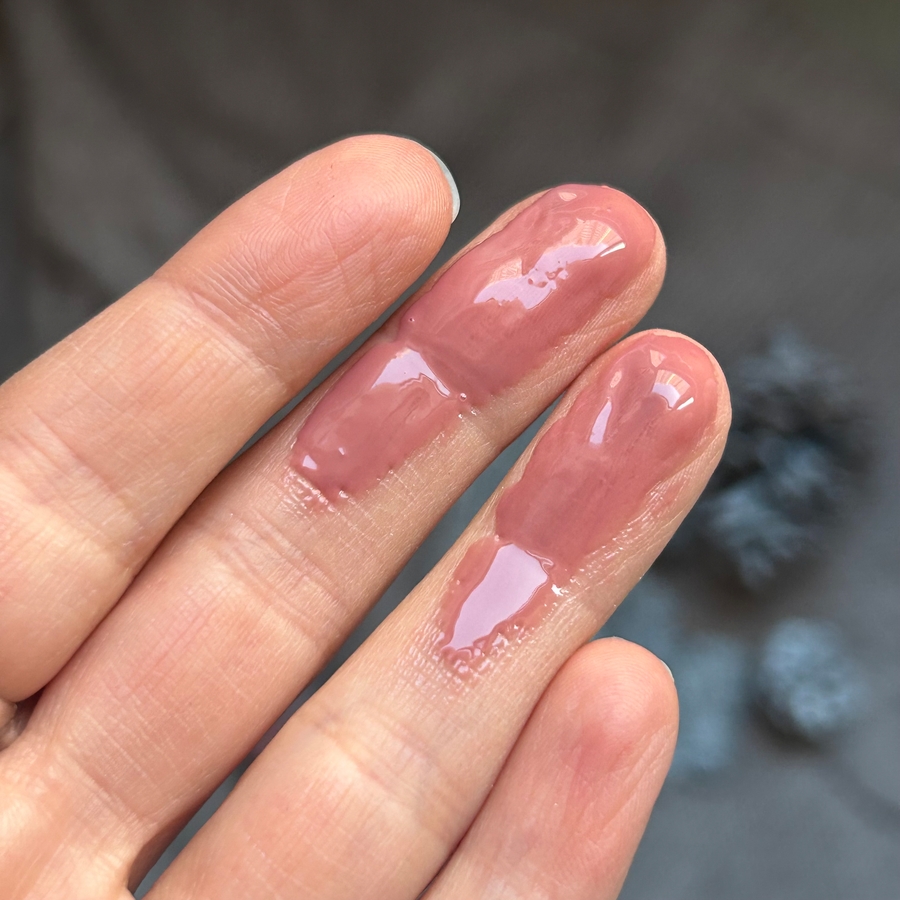 Текстура тинта как в описании гелево-кремовая, густая. Распределяется ровно, без полос и затеканий, белую полоску и нити не образует, липкости тоже нет. Текстура очень комфортная, обволакивающая.