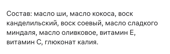 Для начала, немного о составе. Он был главным критерием при выборе бальзама. Мне понравилось, что в составе много масел, но нет касторового, от которого у меня иногда появляется неприятная реакция. Здесь нет красителей, отдушек и продуктов нефтепереработки.