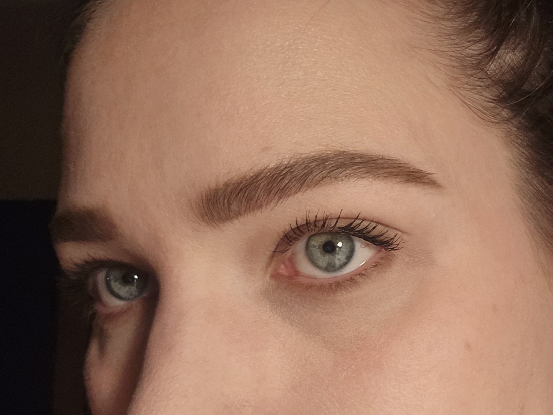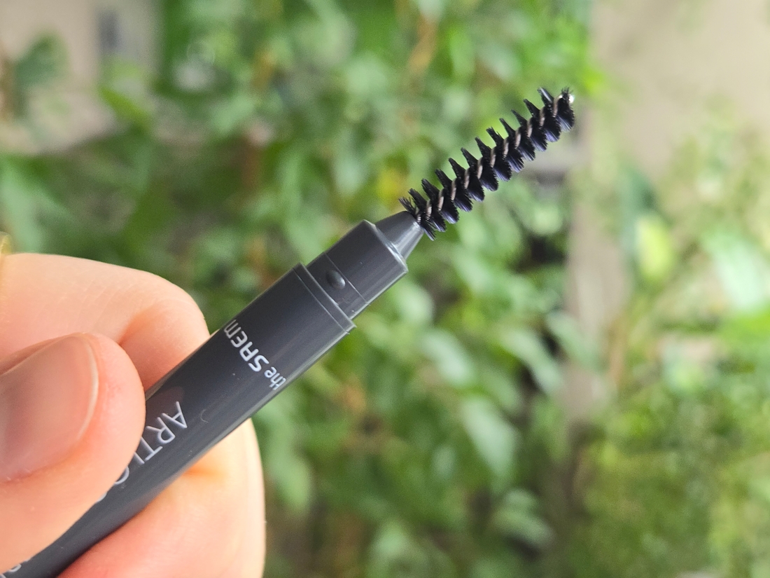 Карандаш стойкий, он хорошо закрашивает места без волос на бровях. При этом вполне продержится там целый рабочий день.