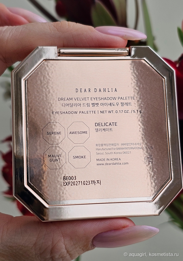 Сегодня мы изучим палетку теней из четырёх оттенков. Название «Delicate» и корейское происхождение уже намекают, что яркости и пигментации ждать не стоит. Но современные формулы должны, как минимум, сделать процесс макияжа лёгким и приятным.