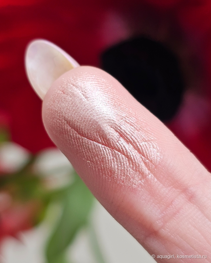 Текстура теней твёрдая. Сияющие оттенки плохо набираются на кисть, лучше всего брать плоскую синтетическую.