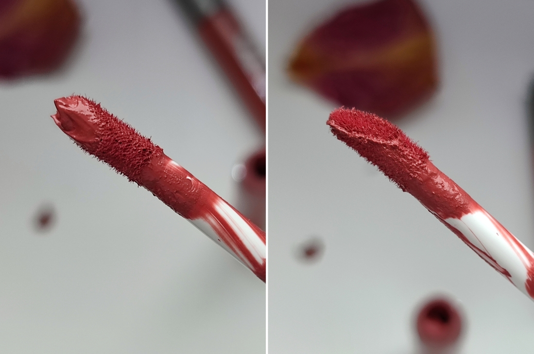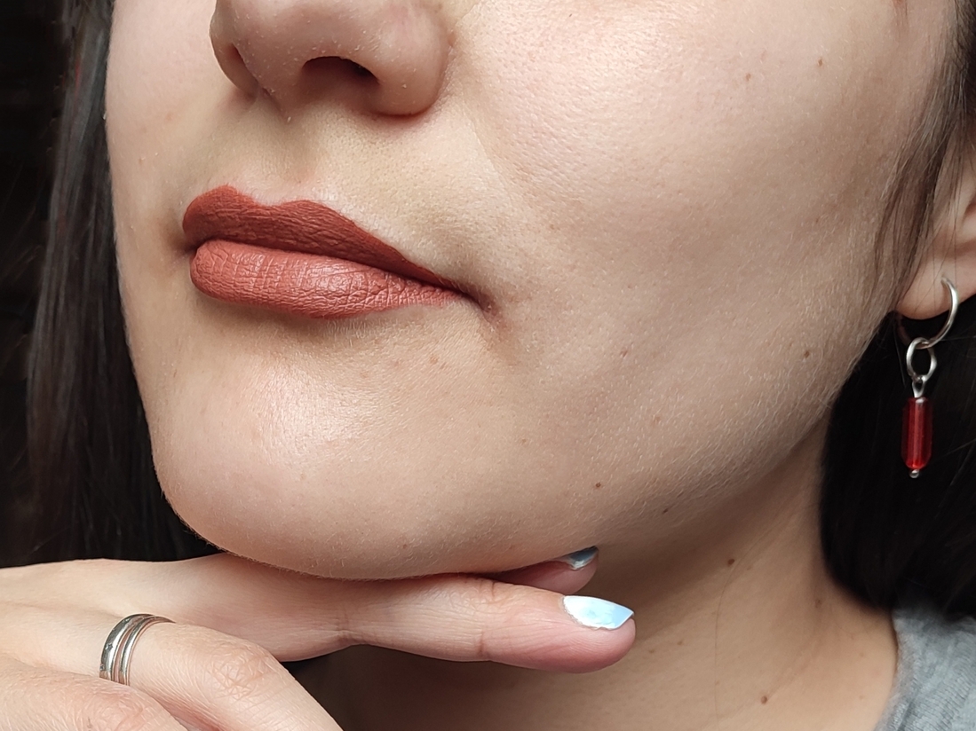 Нанесение аппликатором. Его можно нанести идеально ровно, честно. Не знаю, что пошло не так: то ли руки устали, то ли губы от этого марафона матовых помад, но контур надо было подравнять.