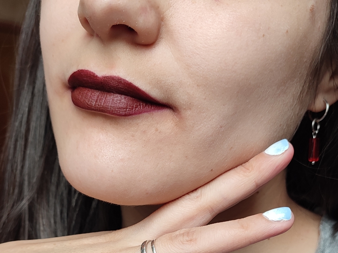 Эту помаду я бы повторила в полноразмере, очень она мне нравится. Кажется, у меня эра темных помад.