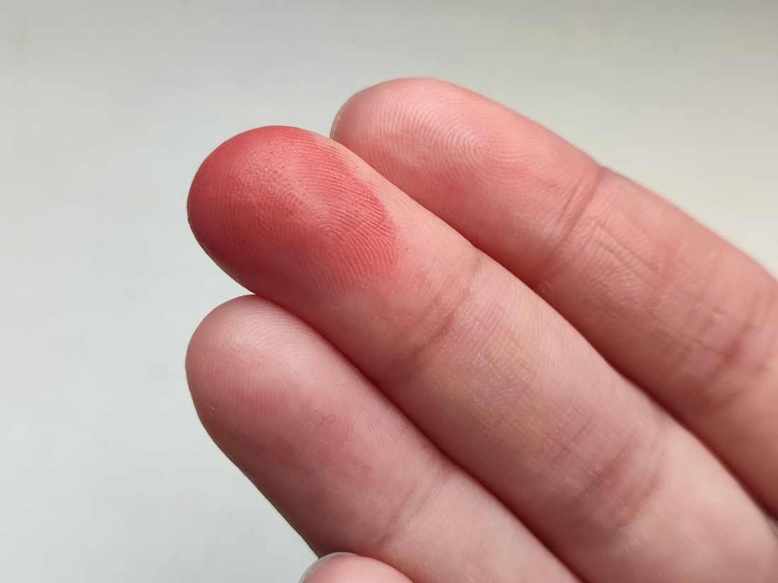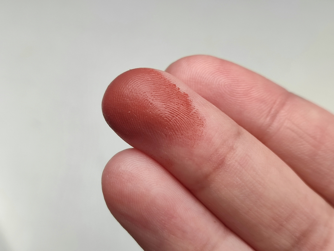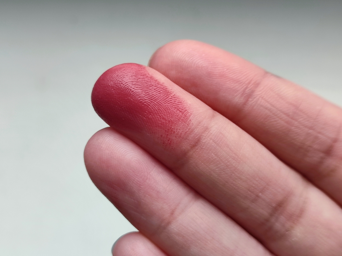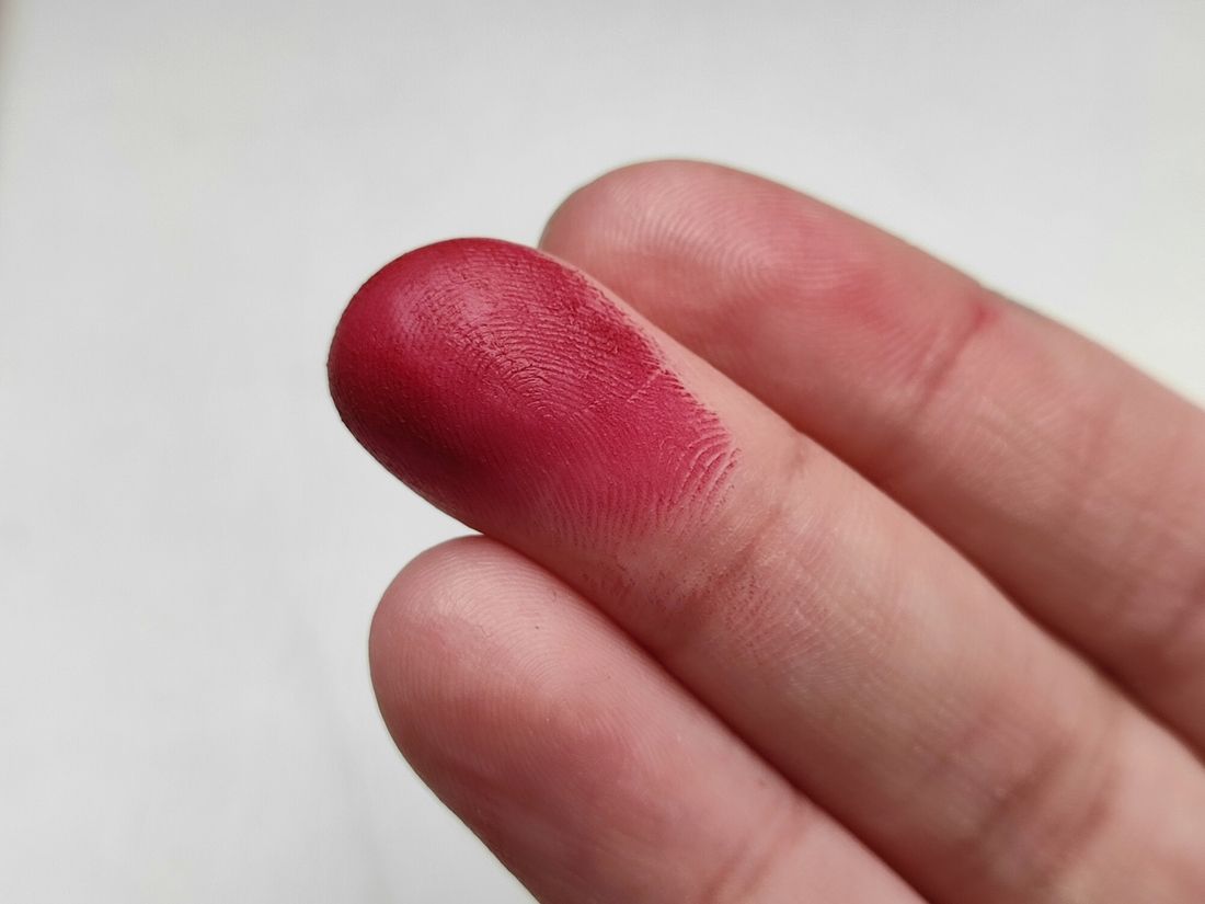 Растушеванный пальцем из середины губ. Сухое. Красное.