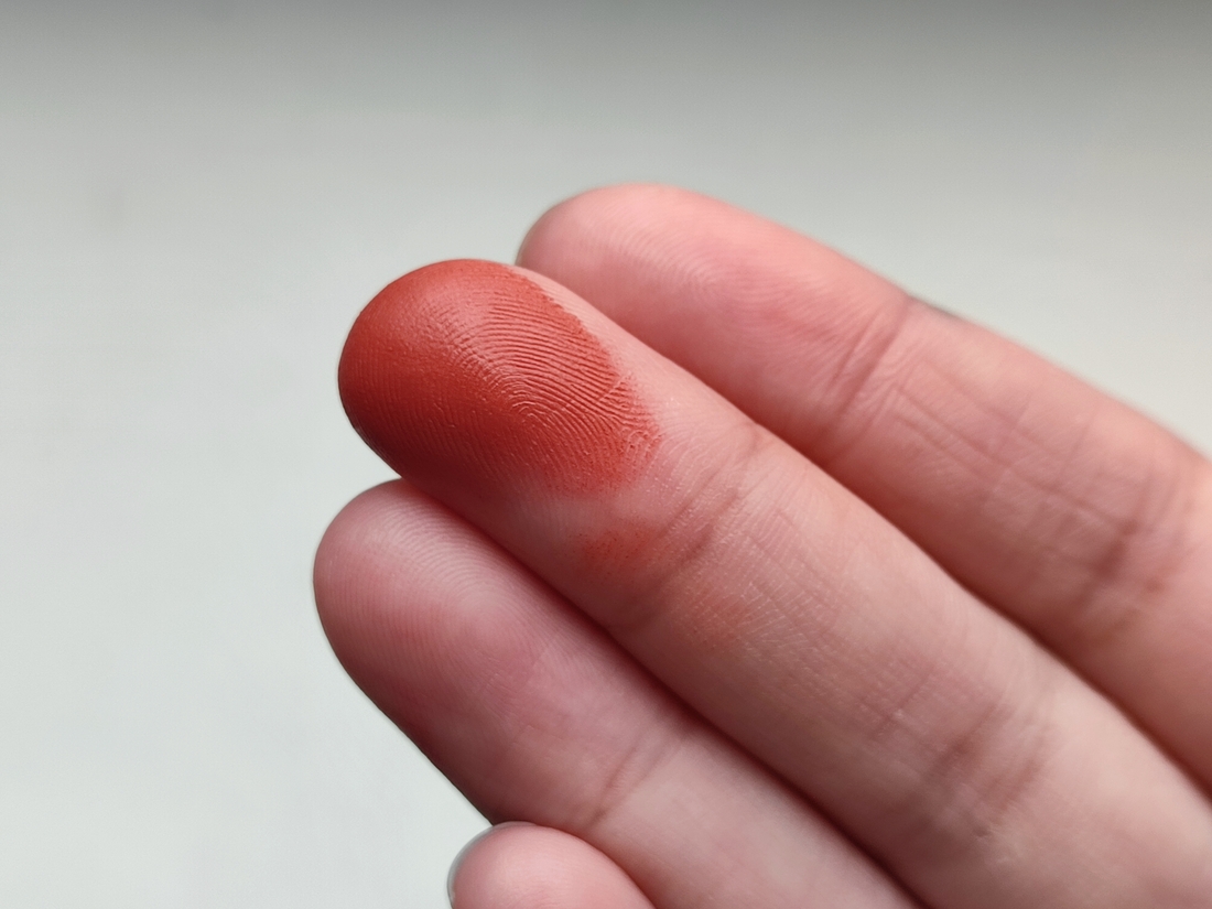 При нанесении аппликатором получаются настоящие глиняные губы после обжига. Спорно, но красиво, блин.