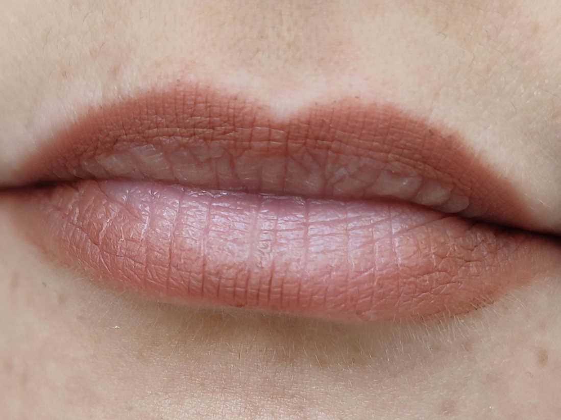 Цвет чуть светлее моего родного оттенка, и губы с ним немного теряются. Зимой, конечно, нежно смотрится. Но летом мимо.
