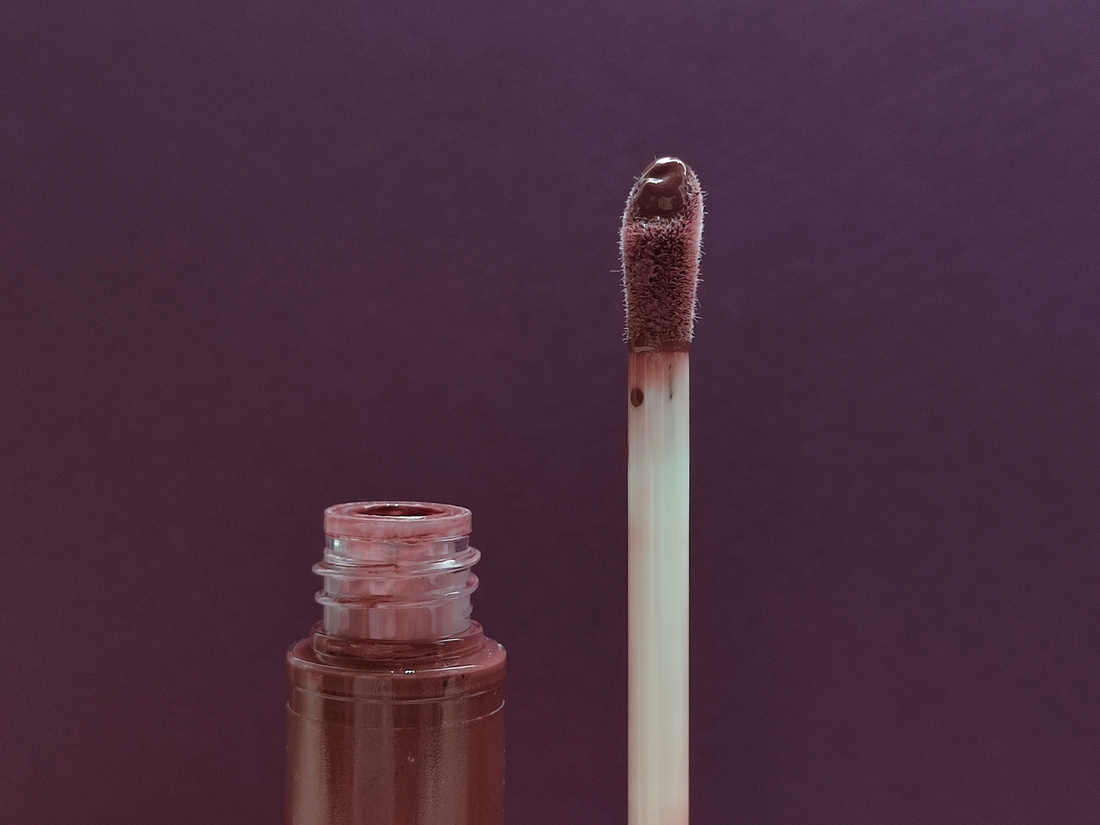 Аппликатор у блеска немного нестандартный — копытце с углублением. Такой стульчик для блеска. Набирает не очень много продукта.
