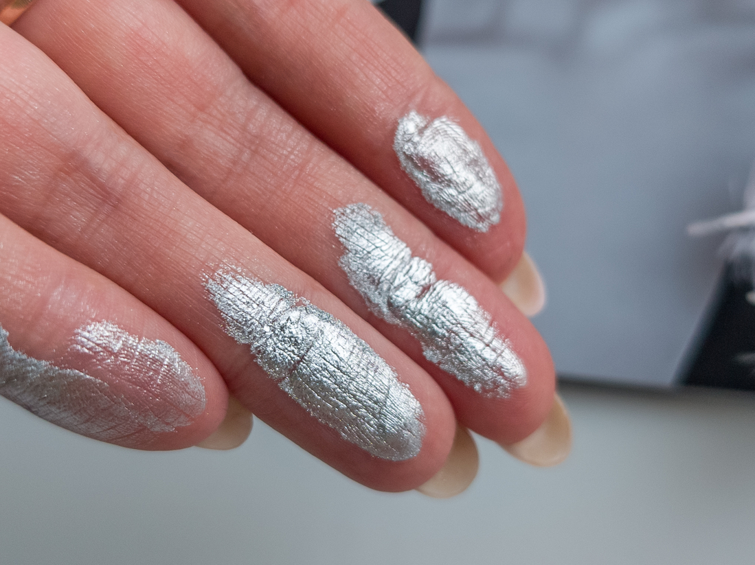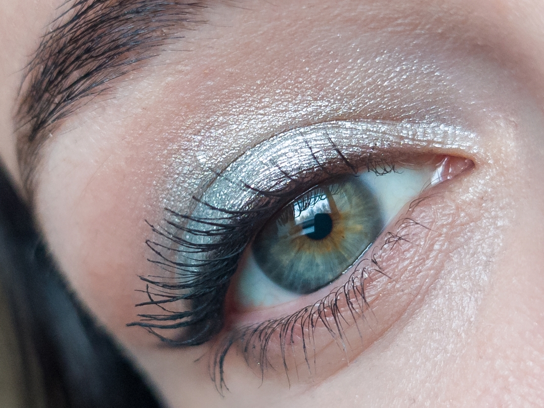 Этот оттенок я увидела в посте у Ани Малины и подумала, что мне тоже такое надо). Стальное серебро на грани с морозным голубым. Честно говоря, я боялась, что такой оттенок будет подчёркивать красноту глаз и делать их блеклыми, поэтому на всякий случай отделила белок черной межресничкой и стрелкой. Но я зря переживала, он совсем не придает глазам усталый или болезненный вид, наоборот, с ним есть какой-то душевный вайб праздничных 80х.
