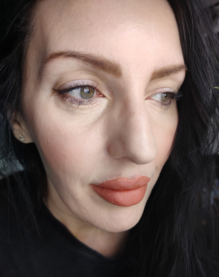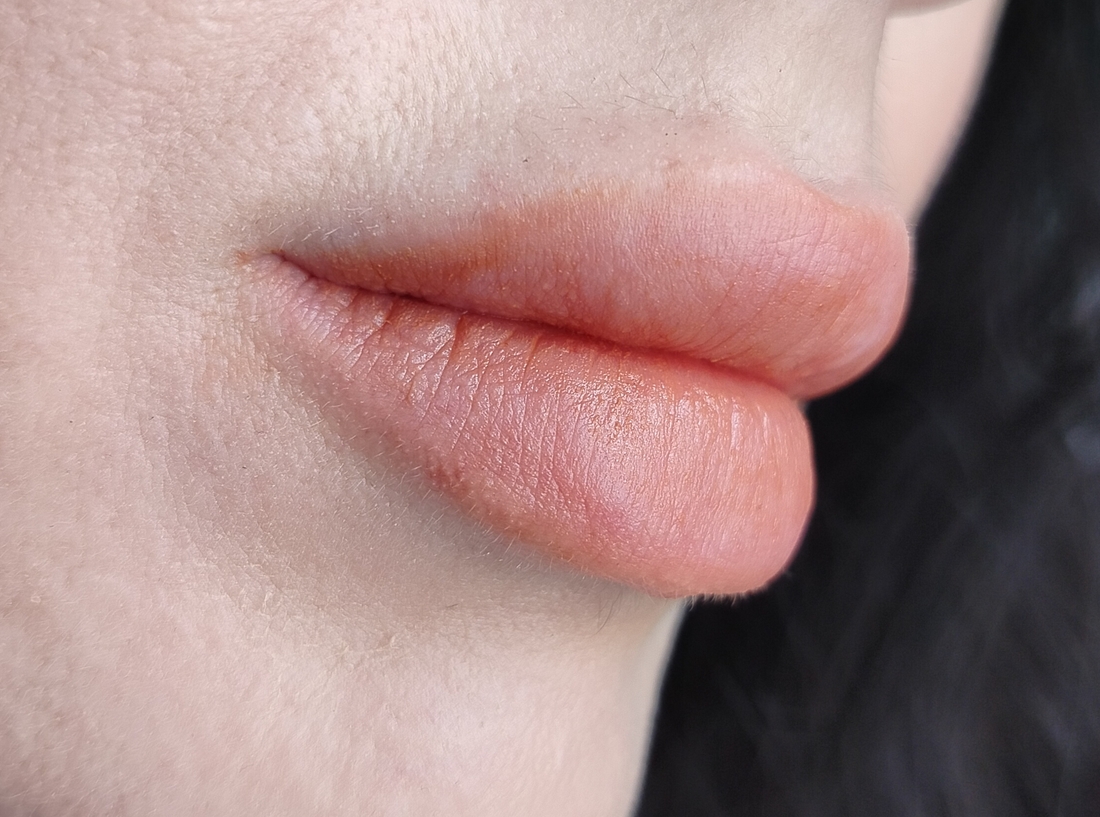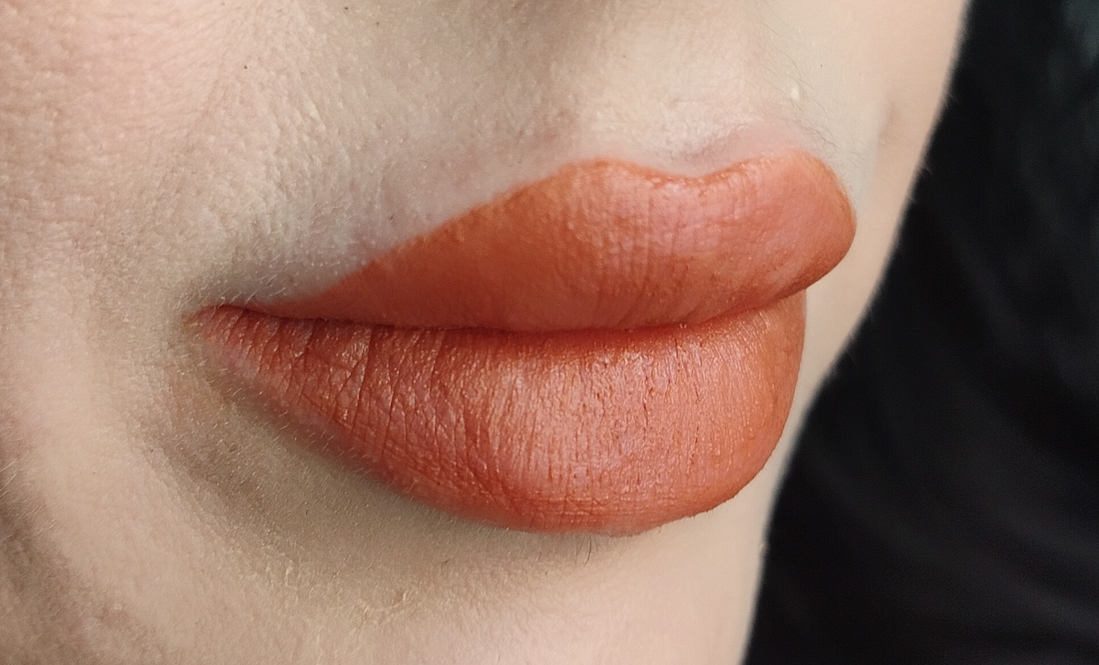 Покрытие получается бархатистое, пудровое. Губы даже после нескольких слоев с ней чувствуют себя прекрасно — мягкие, не подсушиваются в течение дня.