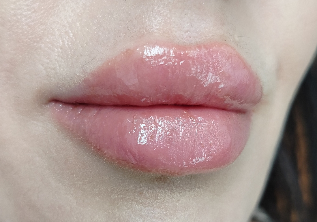 Финиш у масла глянцевый, со временем практически полностью впитывается, поэтому если хотите блеска, нужно периодически обновлять. На губах практически не ощущается — никакой липкости, плотности, жирности. Губы заметно смягчаются даже после разового использования.