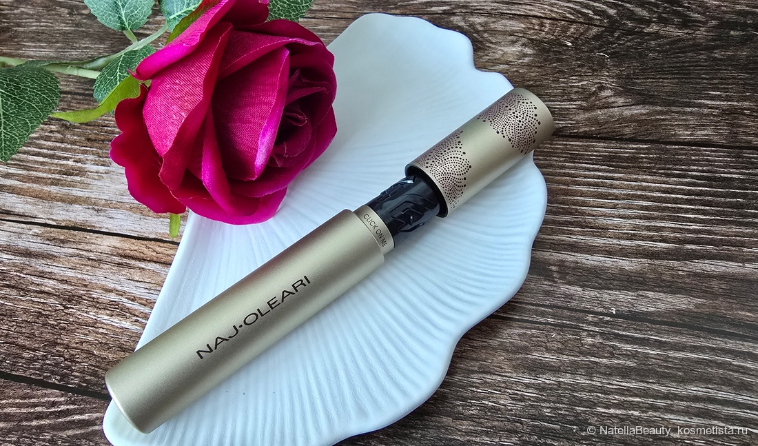 Сама тушь находится в золотом матовом футляре, очень приятным на ощупь. На футляре не остаётся отпечатков пальцев и царапин. Это большой плюс.