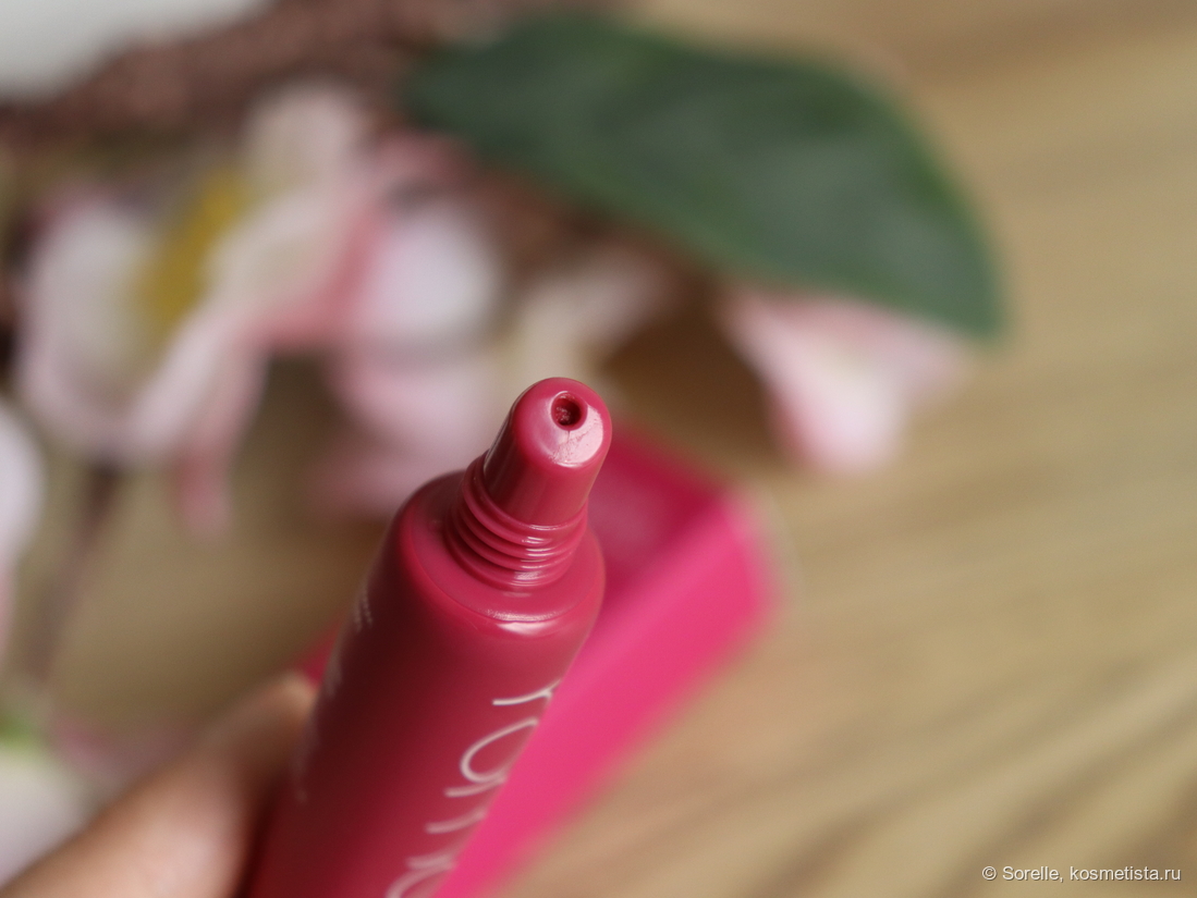 Аппликатор пластиковый, скошенный. Наносить им средство удобно, а вот распределять — не особо. На губах я предпочитаю использовать силиконовую кисть-палец, на щеках — обычные кисти.