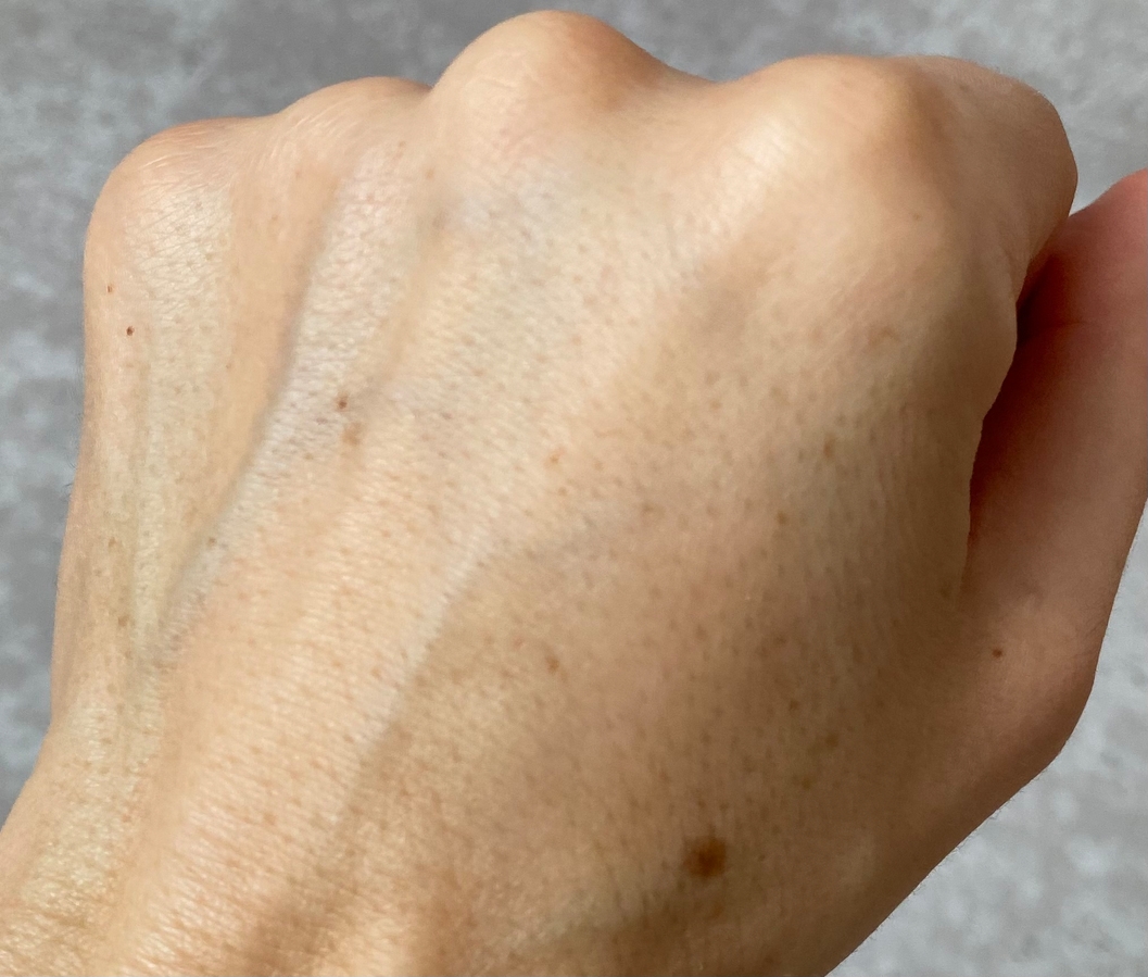 Для сравнения: если нанести на руку только активатор — это прозрачная жидкость (сверху). А после соединения двух фаз получается слегка мутноватая светло-бежевая сыворотка (снизу).