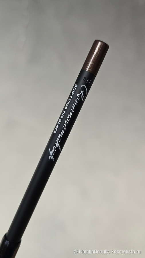 Don't Stop The Dance — красивый коричневый оттенок сснейтральным подтоном без красноты. Единственный карандаш в шинейке с явными золотистыми боестками. Выглядит очень красиво!