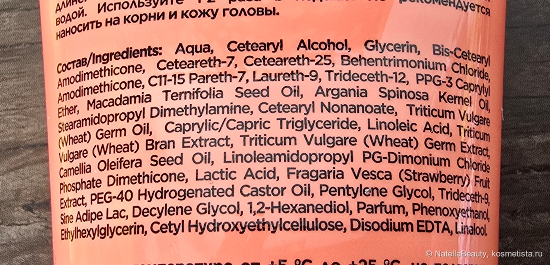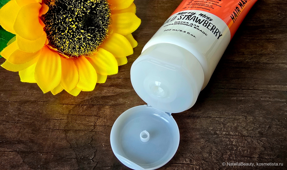 Аромат потрясающий, немного химозненький, клубничный. Очень приятный, ощущается во время смывки и держится на волосах легким облачком.