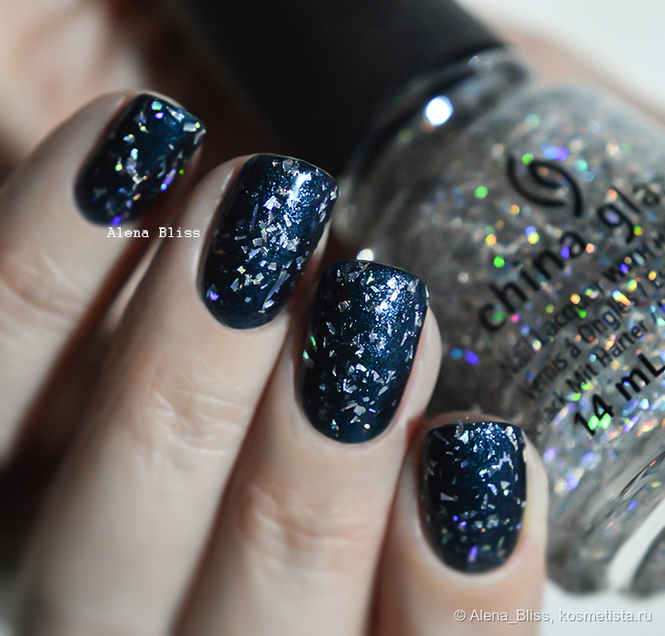 прозрачная база с очень интересным замесом разноразмерного рубленного голографического глиттера