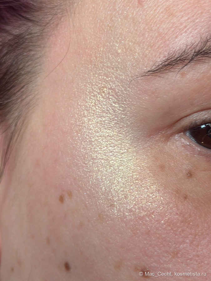 Из-за базового цвета хайлайтер больше похож на тени, да. И запеченная текстура тут плюс — она сухая, не кремовая, а значит, будет меньше скатываться.