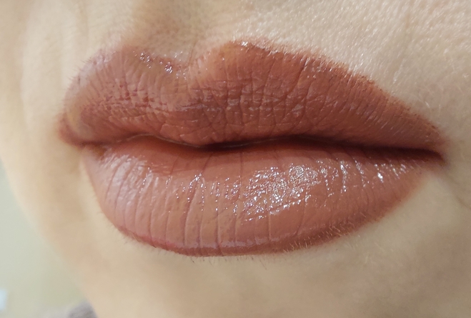 Формула сияющая, потому и не самая стойкая, однако, после впитывания в кожу пигмент остаётся заметен, а губы продолжают радовать мягкостью и здоровым видом. Перекус покрытие переживёт, кстати.