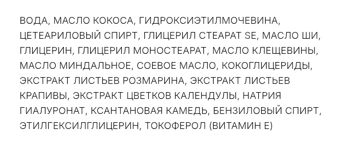 В составе уже не переживала за масло кокоса. Раньше опасалась, так как оно мне иногда сушило кожу рук, но формулам бренда я доверяю. По крайней мере, в кремах для рук и тела. Помимо кокоса есть масло ши, гиалуроновая кислота, витамин Е и ряд экстрактов.