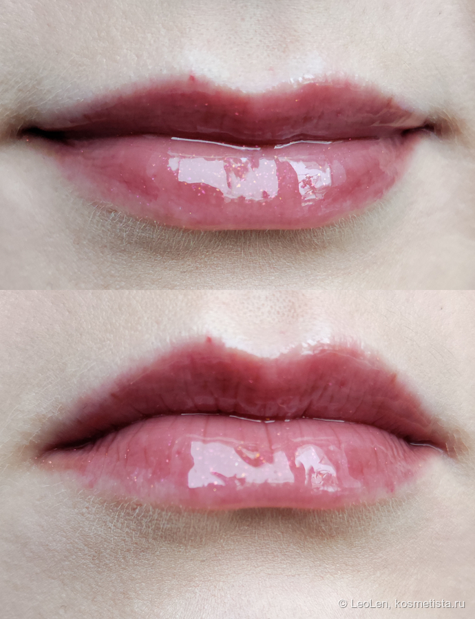 Можно варьировать степень глянца, нанести плотнее, в два-три слоя, но тогда есть шанс что блеск потихоньку потечёт в уголки губ.