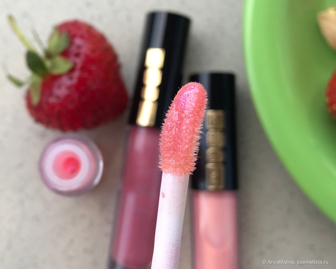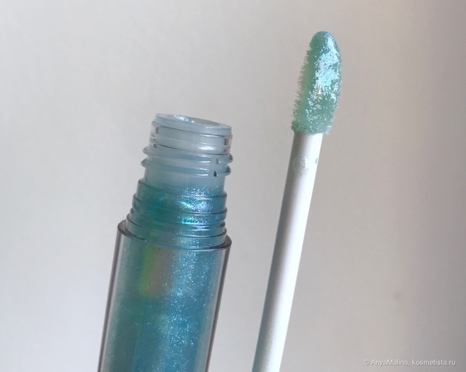 Аппликатор с заостренным кончиком и вогнутой сердцевиной, как у этого блеска, я бы вообще ставила во все жидкие продукты для губ, настолько эта подвижная лапка оказалась для меня удобной. Ножка длинная, наносить приятно.